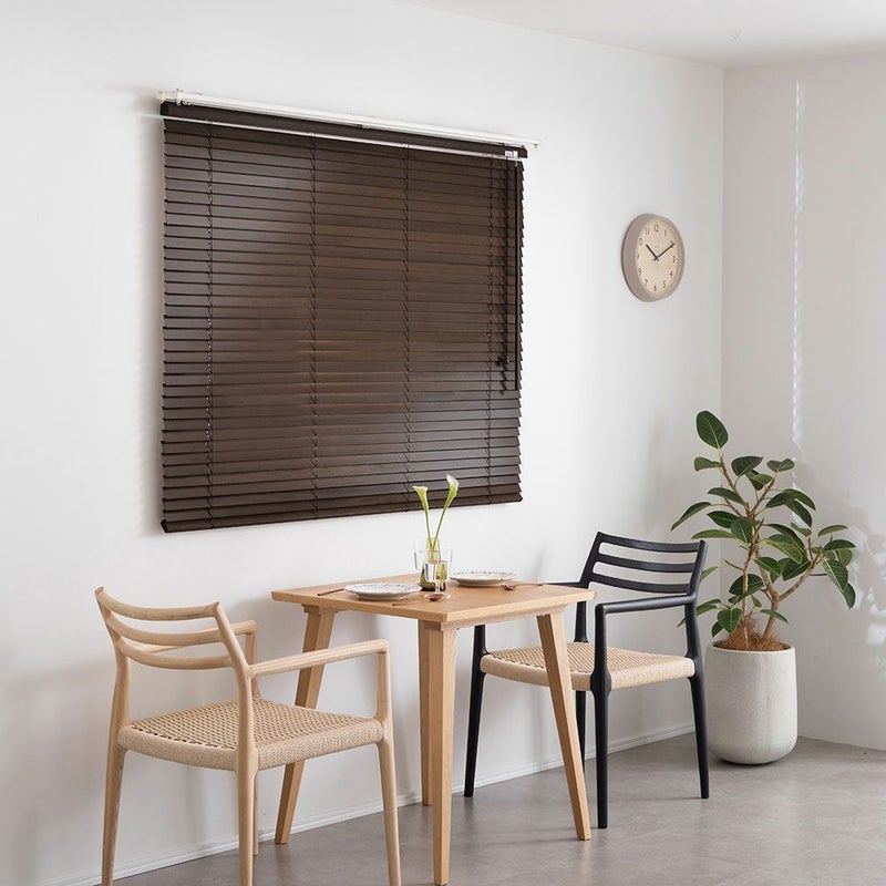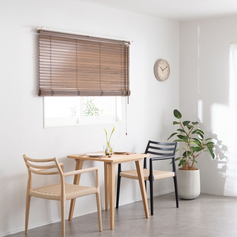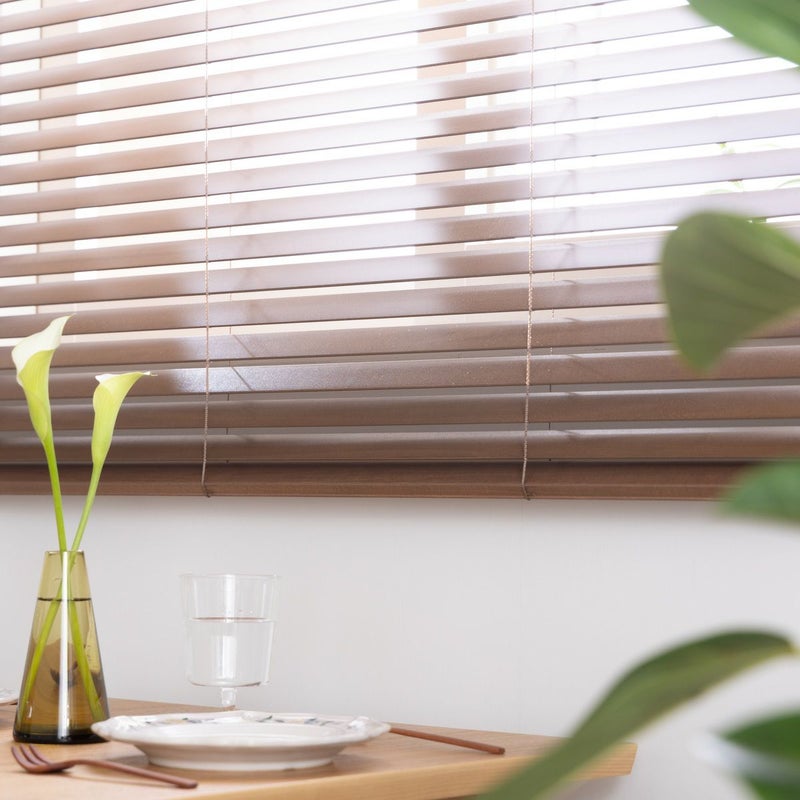 視線をやわらかく遮りながら、自然な光を取り入れられるウッドブラインド。