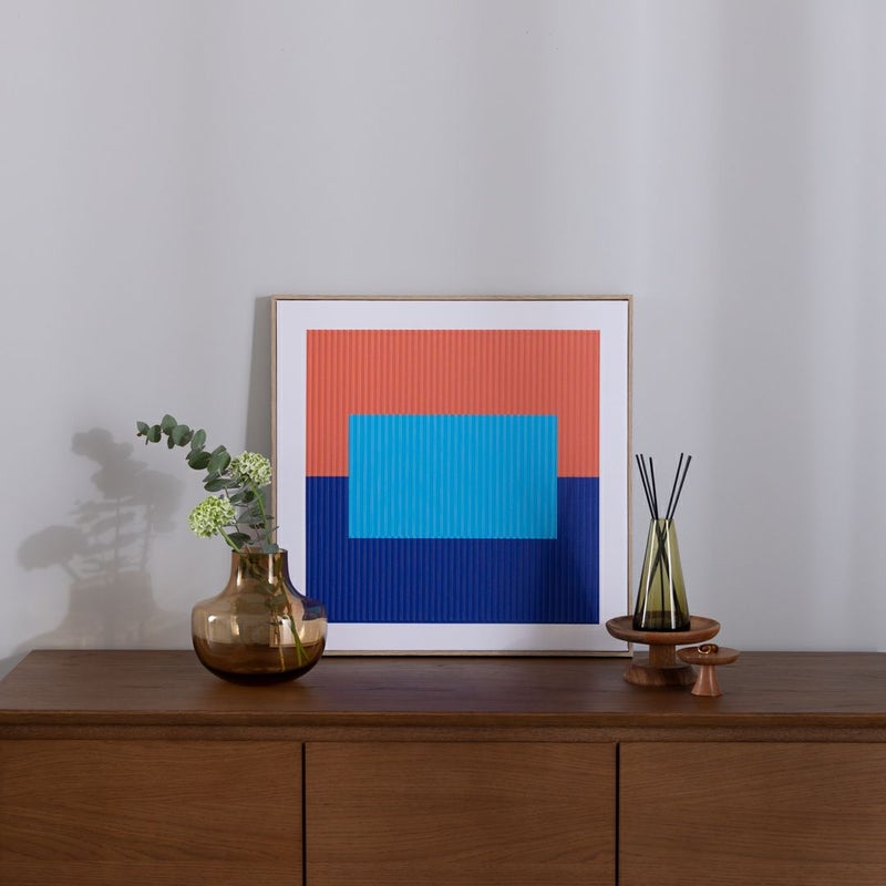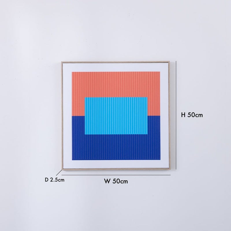 サイズは、横50cm×縦50cmの正方形で、長方形のアートと飾って動きを出しても◎。