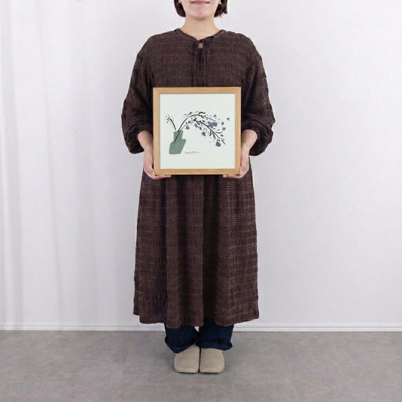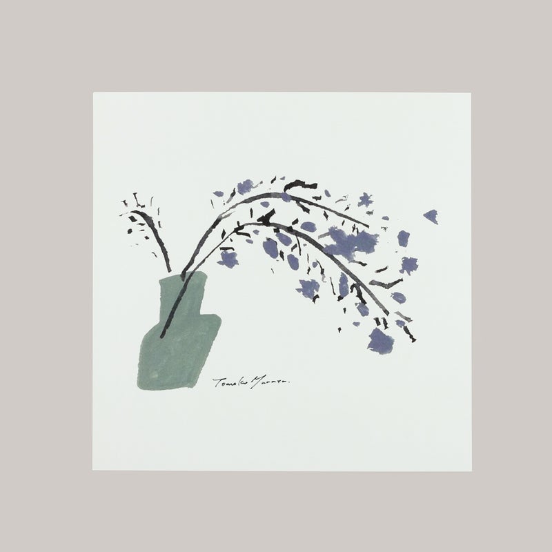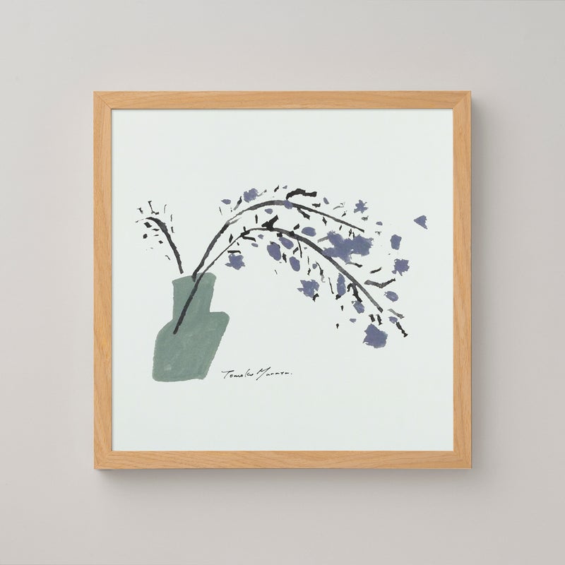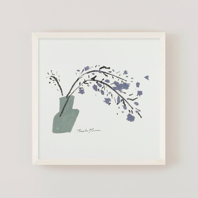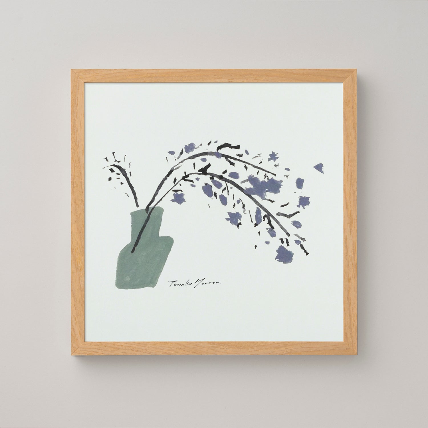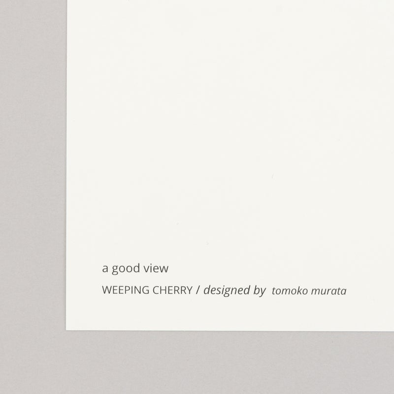 花瓶にそっと飾られた、しだれ桜。 余白を生かしたレイアウトと、わずかに傾いた花瓶のバランスが印象的なアートです。