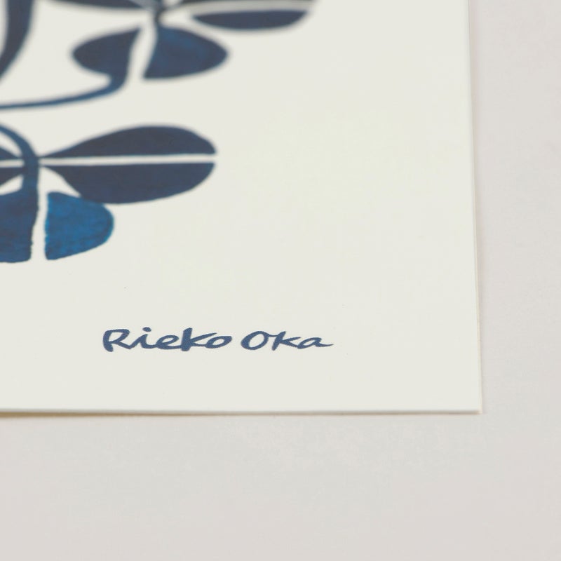 クローバーのかたちを思わせる青い葉が左右対処にリズミカルに広がり、静かで心地よいリズムを生み出しています。