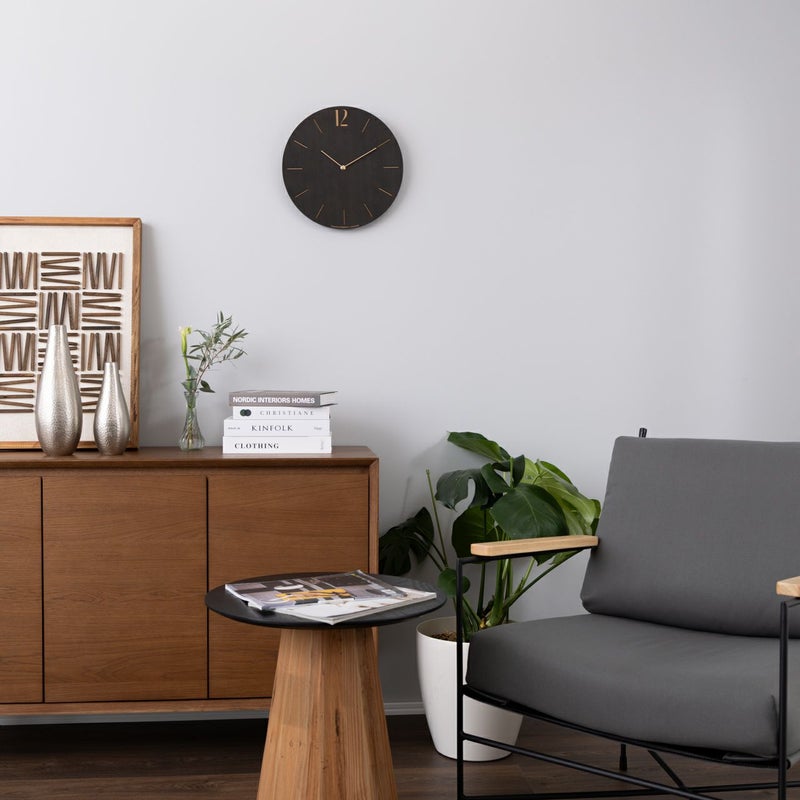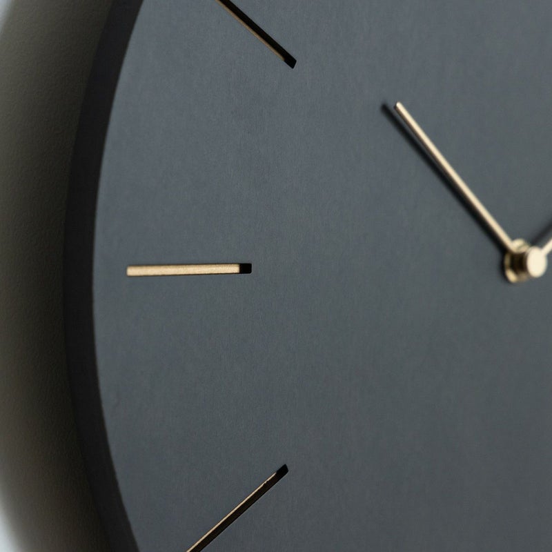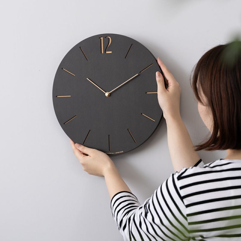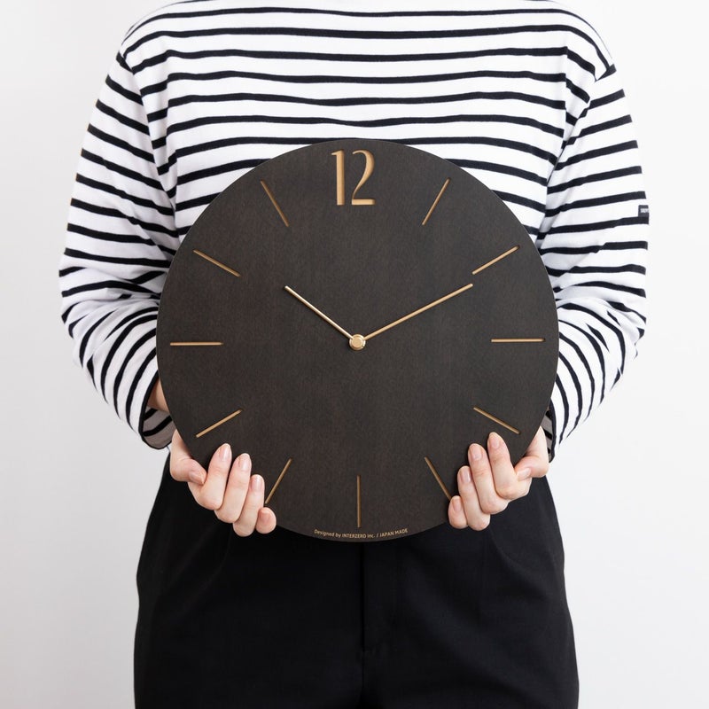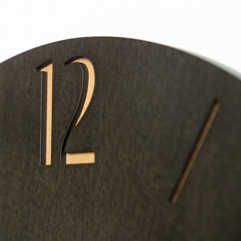 文字盤と針の真鍮の色がコントラストとなり印象的に浮かび上がるシックで洗練されたデザインの壁掛け時計です。 モダンテイストのお部屋や、グレーを基調としたシックなお部屋にぴったりです。 木目がやわらかく浮かび上がるあたたかみも兼ね備えています。