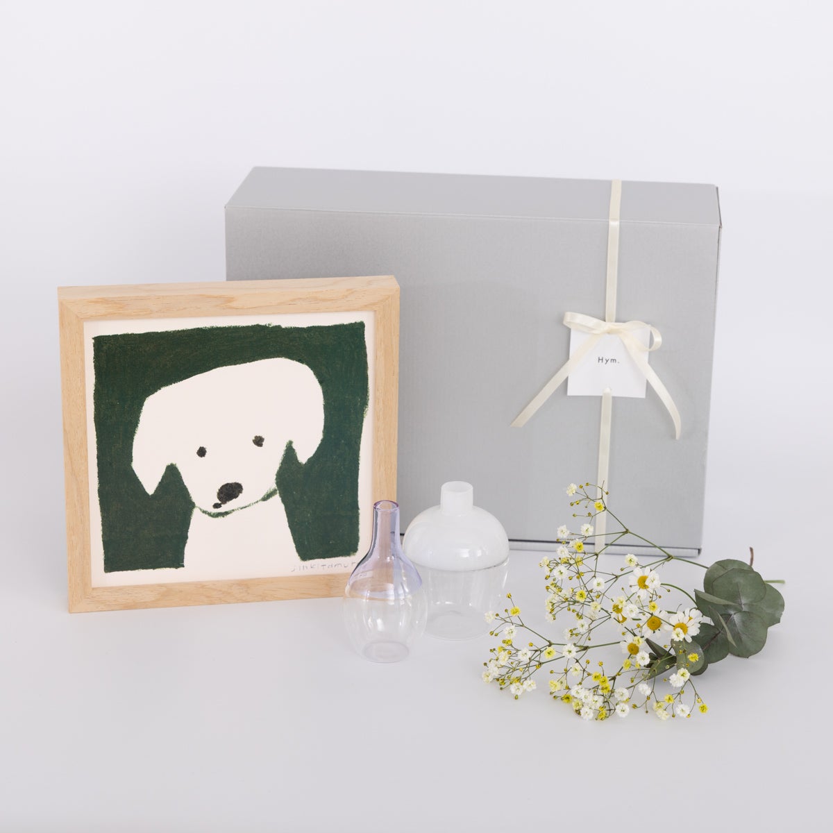 お部屋にそっと寄り添うアートと、選べる一輪挿しのフラワーベースのセットです。