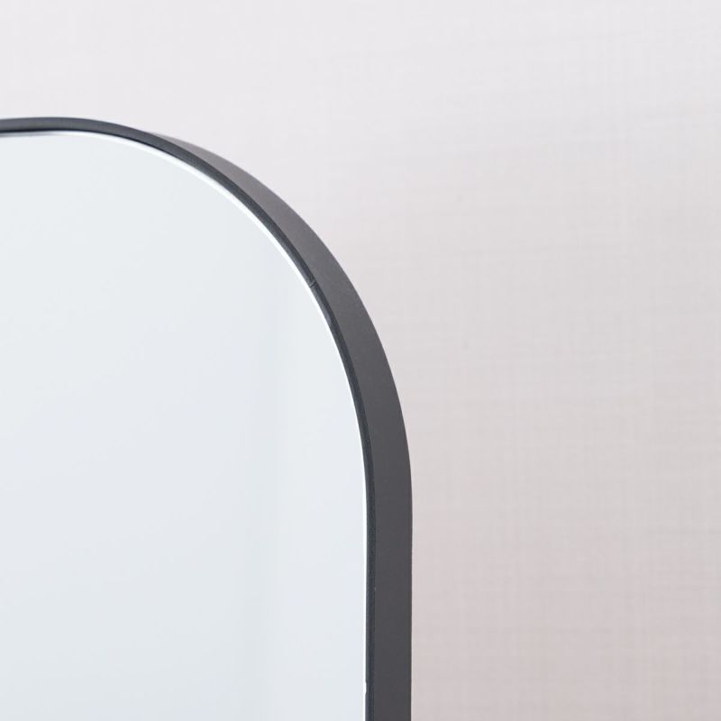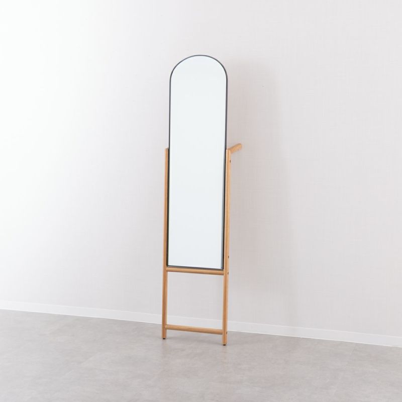 オーク材のフレームと、丸みを帯びたフォルムがあたたかみのある雰囲気を演出するスタンドミラーです。