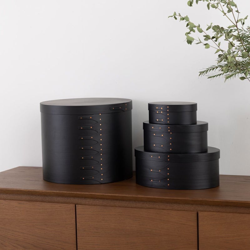 • シェーカーボックスは、薄い木材を曲げて作られる、シンプルな楕円型の木箱です。