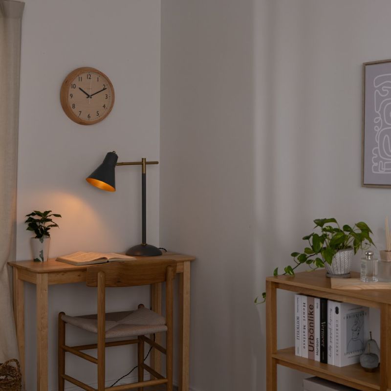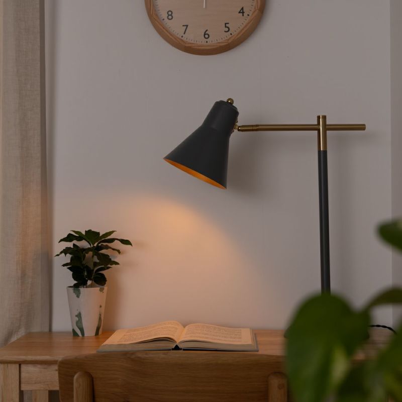 スタイリッシュなデザインながら、やさしいグレーの色合いと丸みのあるフォルムであたたかみも併せ持つデスクライトです。