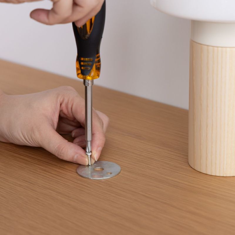 【取り付け方】 ①台座プレートが本体に付いています。ドライバーなどで外し、中に入っているネジを取り出します。 ②ライトを置きたい場所にネジを使って、台座プレートを取り付けます。 ③その上にライトを置くと、本体に付いている磁石がくっつき、固定されます。 ※固定は必須ではありませんが、安全のために取り付けを推奨しております。