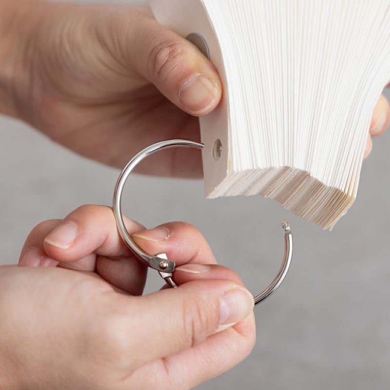 ②付属のリングを上下2か所シェードの穴に通し、上の穴のリングを少し開き、灯具をリングの中に通します。