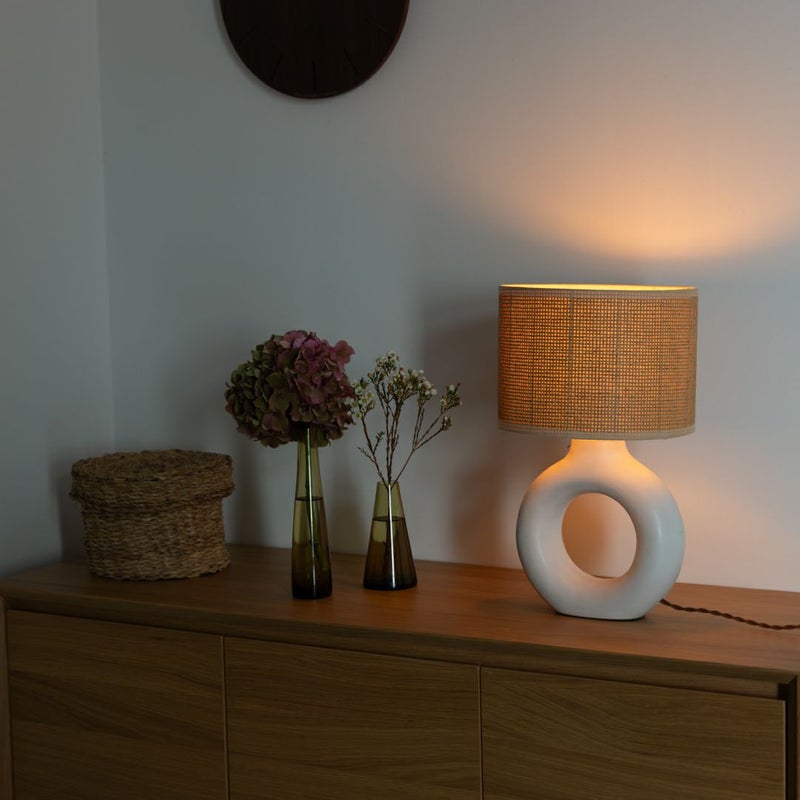 • シェードは、麻のような質感で、ナチュラルなデザインです。