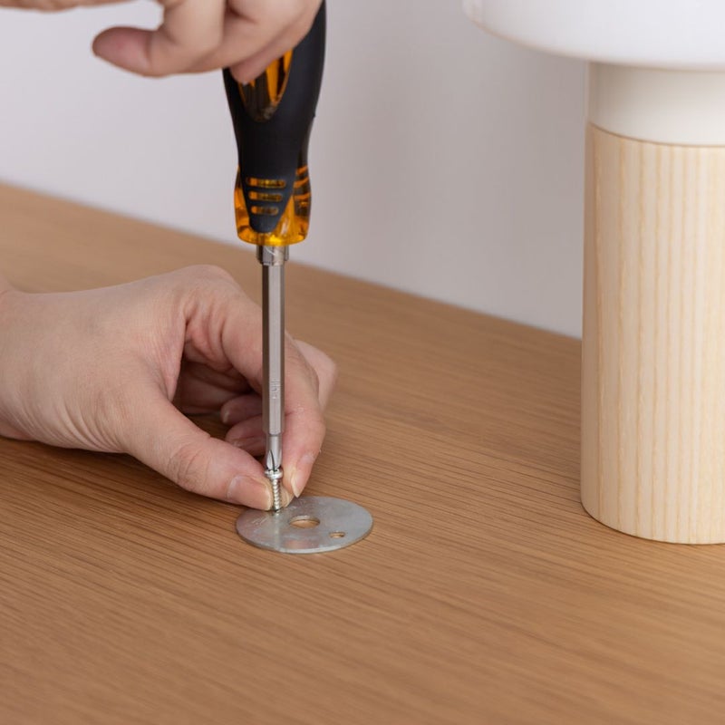 ②ライトを置きたい場所にネジを使って、台座プレートを取り付けます。
