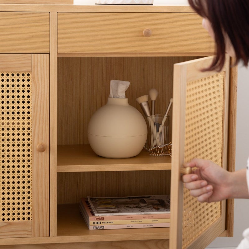 かごめ編みの表情が特徴のシンプルなデザイン。 置くだけで空間にやさしい雰囲気を添え、お部屋の印象をぱっと明るくしてくれます。