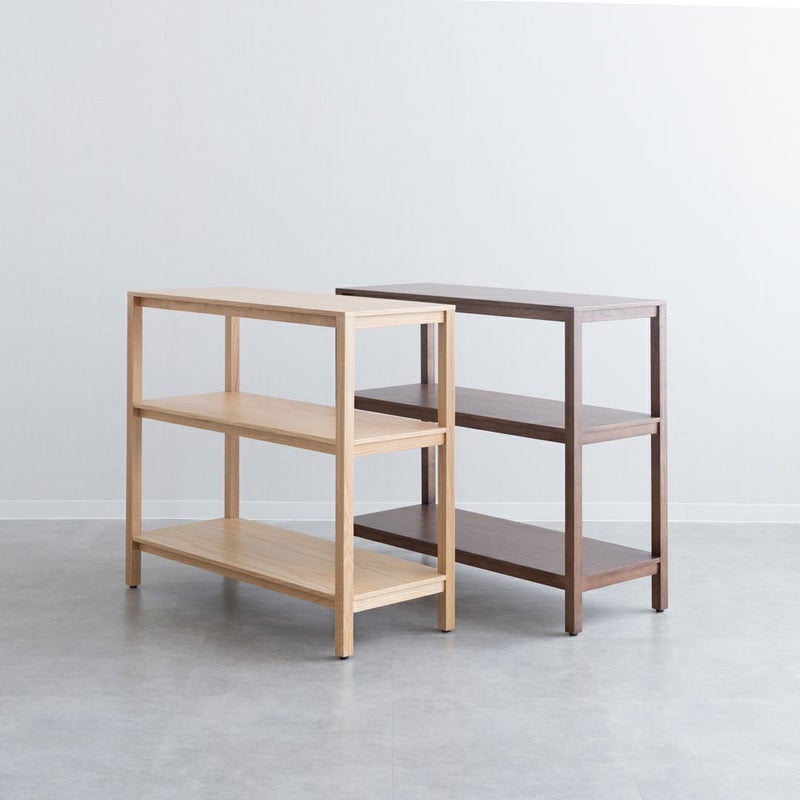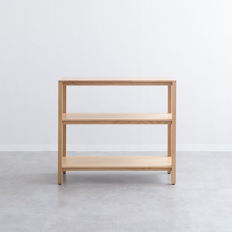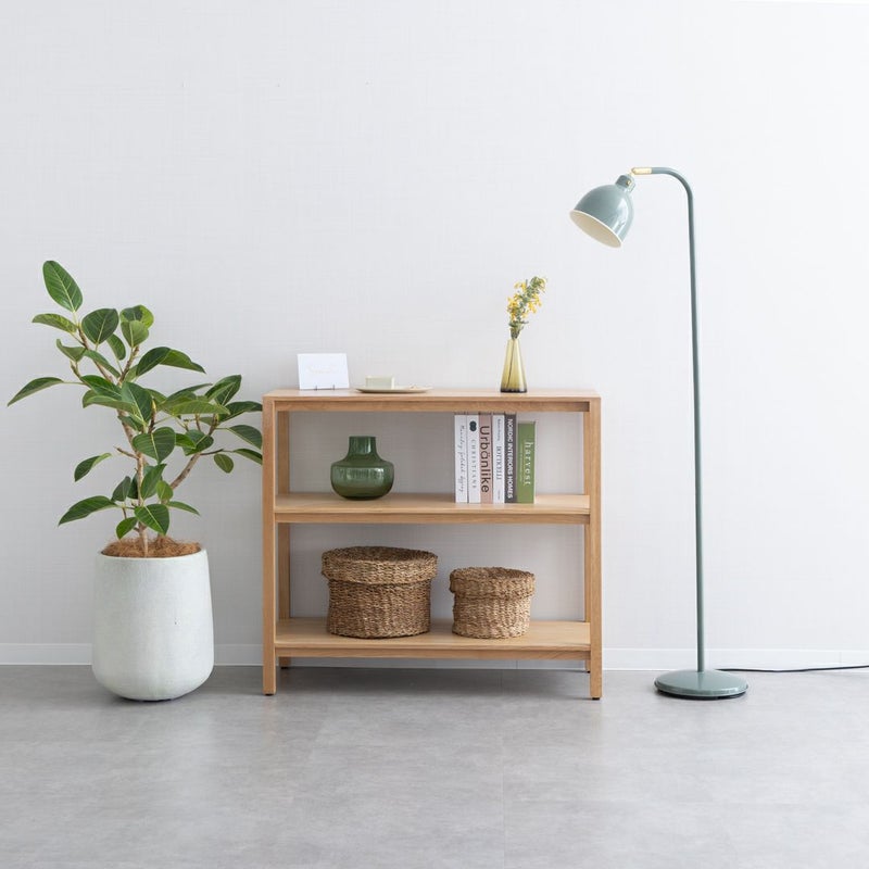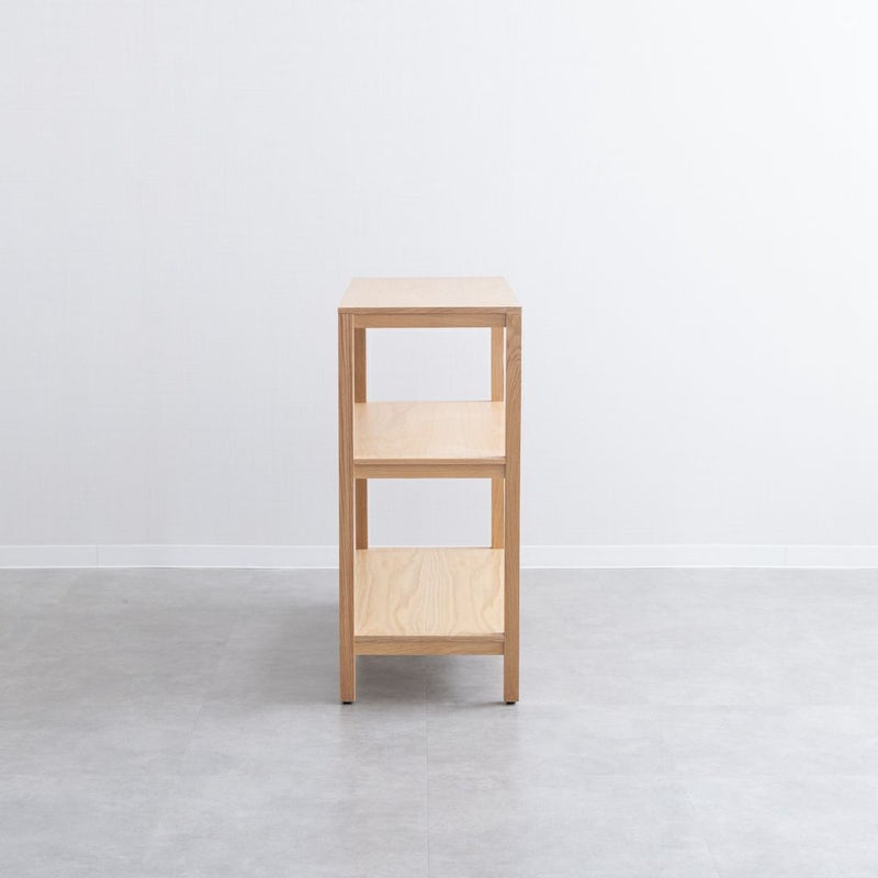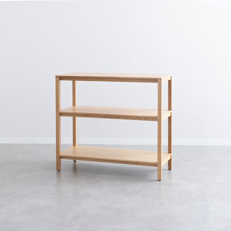 オークの木目が引き立つ、シンプルで飽きのこないデザインのオープンシェルフです。