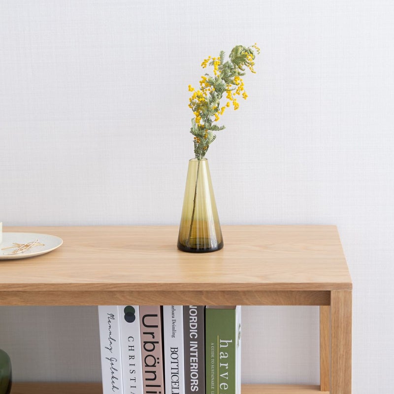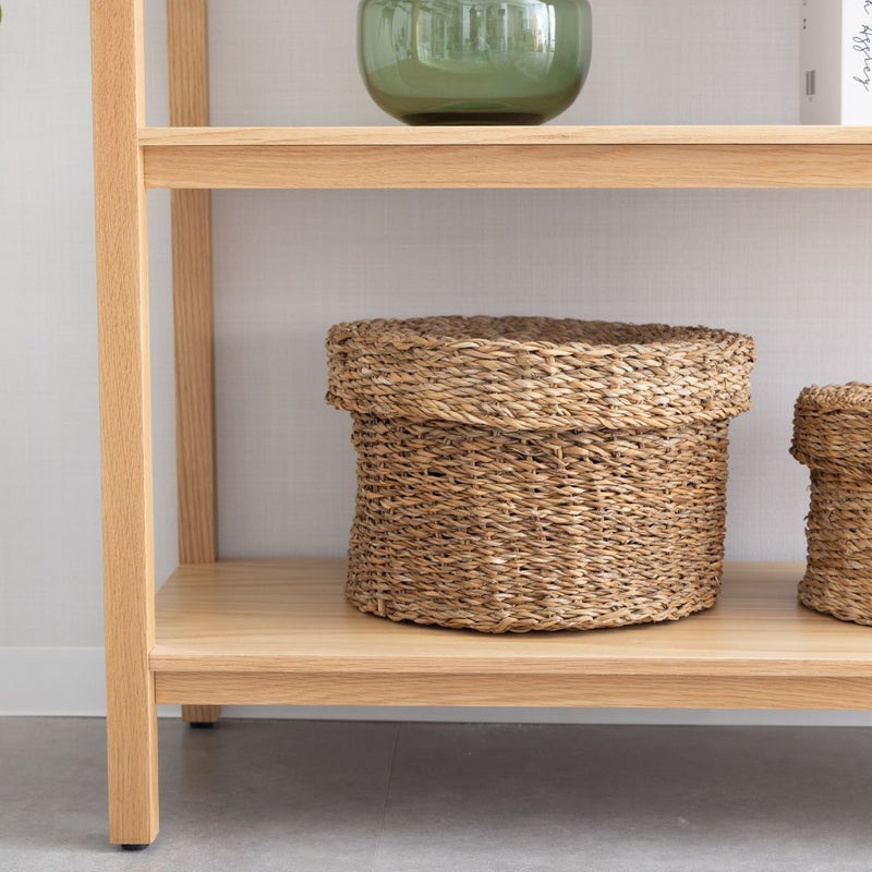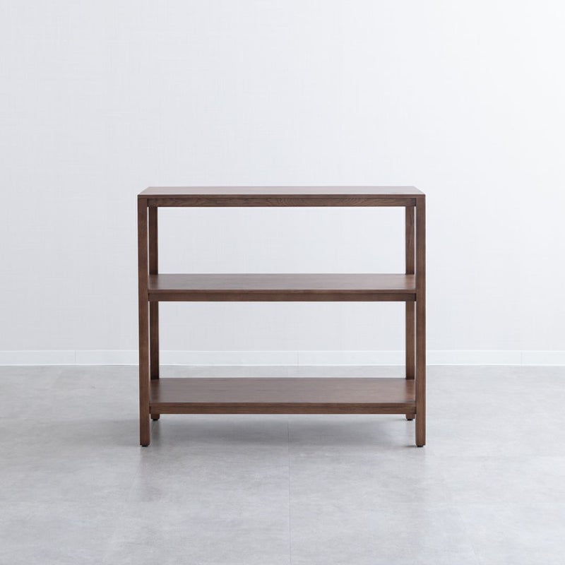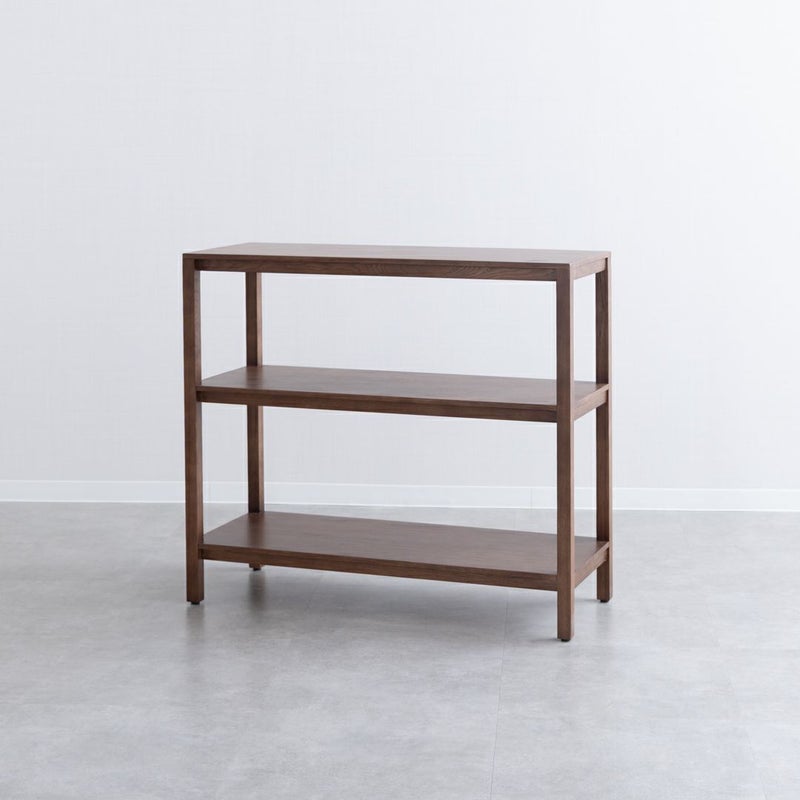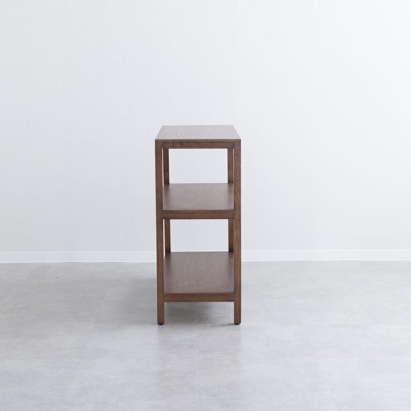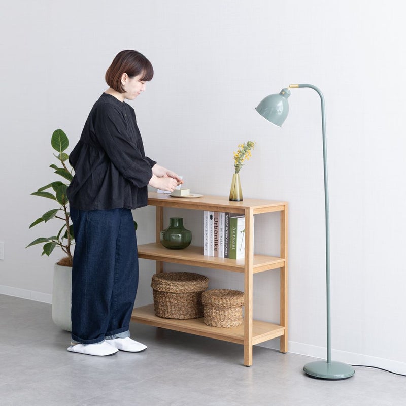 オークの木目が引き立つ、シンプルで飽きのこないデザインのオープンシェルフです。