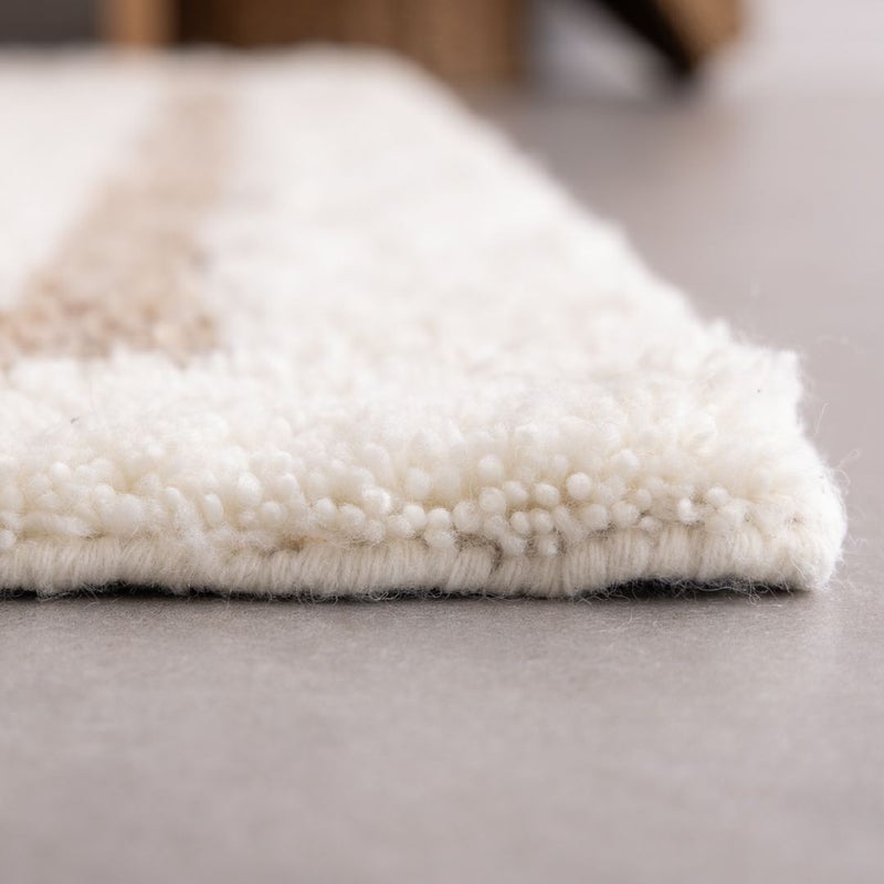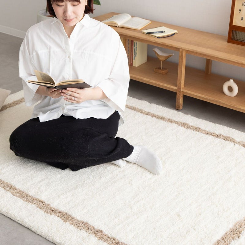 • やさしいナチュラルな色合いで、シンプルながらも落ち着いた印象のラグ。