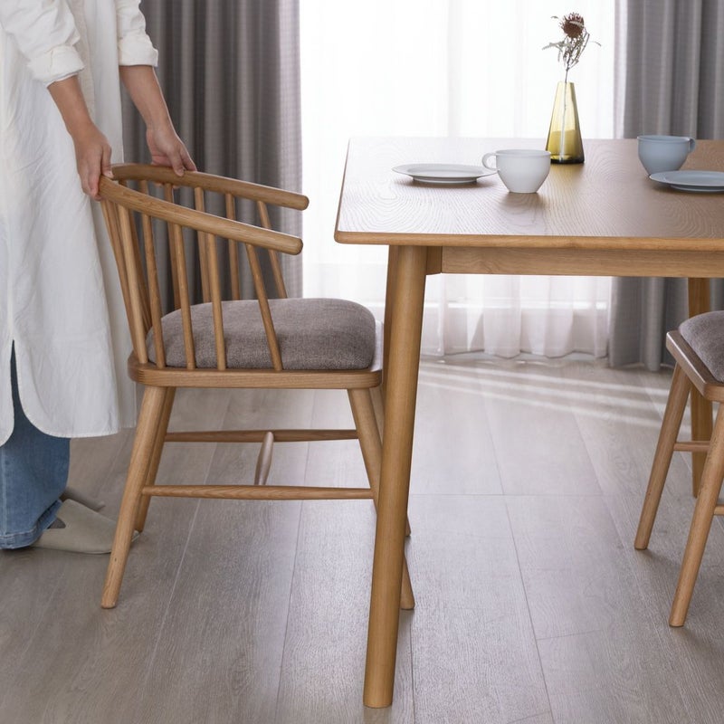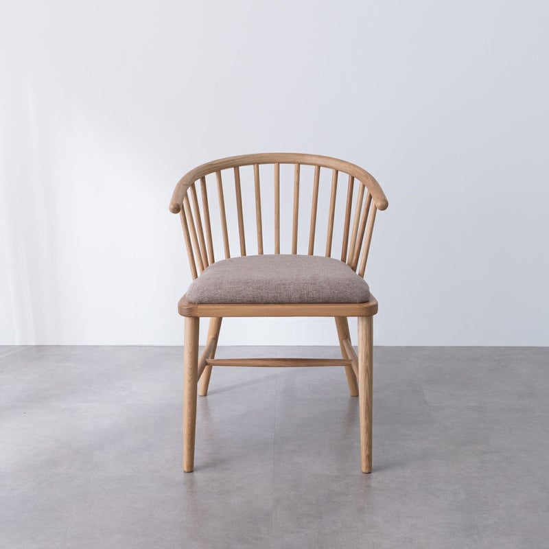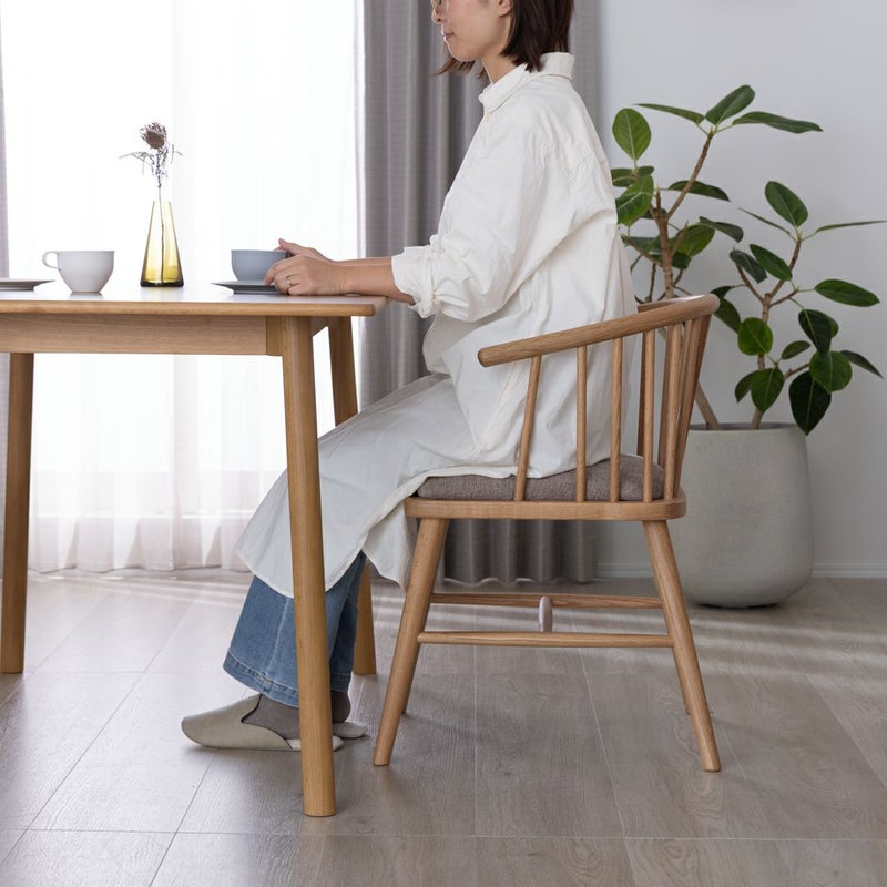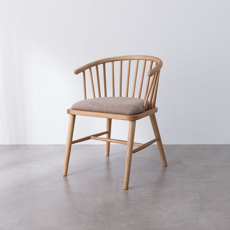 イギリス発祥の伝統的な椅子「ウィンザーチェア」を思わせる背もたれのデザインが特徴のアームチェア。