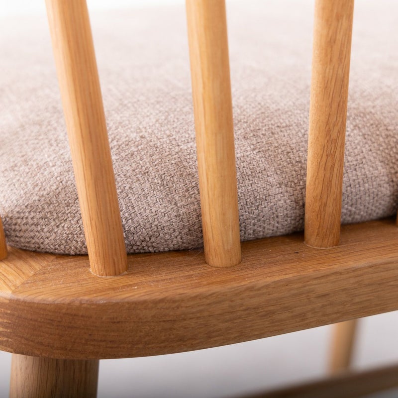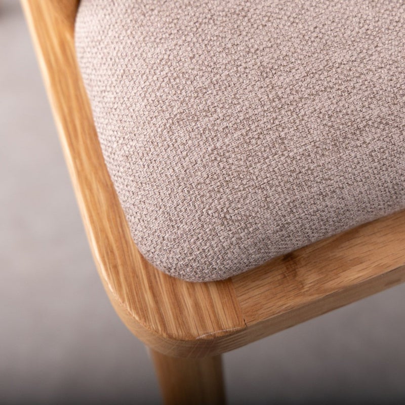 天然のオーク材と、座面の優しいベージュカラーのコンビネーションがナチュラルな空間にピッタリなチェアです。