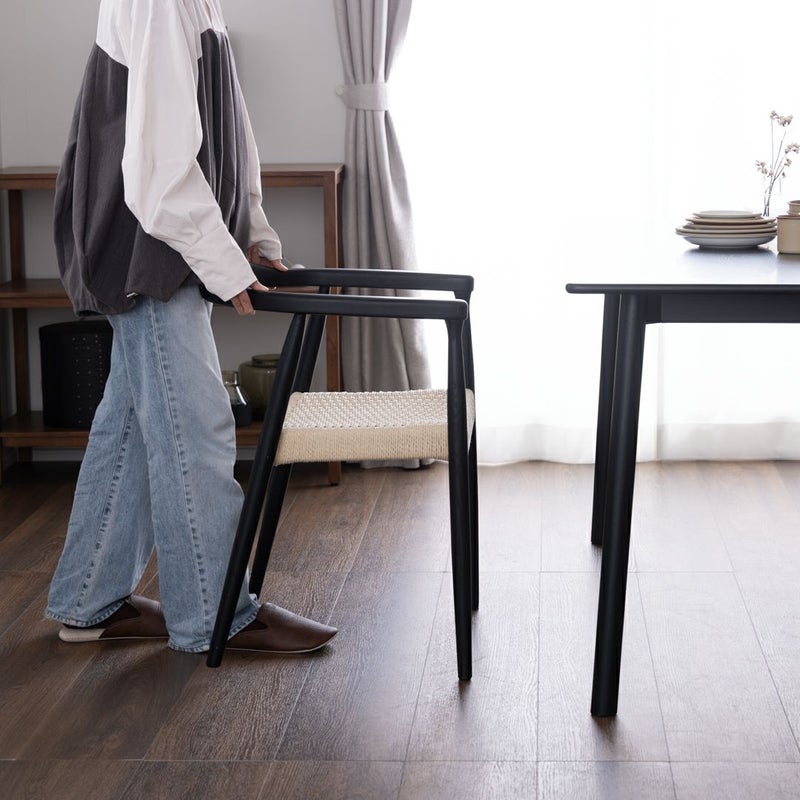 • ブラックを取り入れながらも、やさしい木の表情が空間にほどよいあたたかみを添えるダイニングセット。
