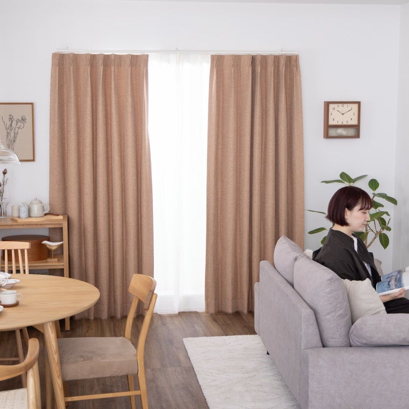 表情豊かなツイードのカーテンに、艶を抑えたマットな質感の、リネン風レースカーテンを組み合わせました。 素材感が引き立つことで、お部屋全体が落ち着き、どこかほっとする雰囲気に。 ナチュラルからシンプル、少し大人っぽい空間まで、幅広くなじみます。 カーテンは、落ち着いた色合いの6色からお選びいただけます。お部屋のトーンや、なりたい雰囲気に合わせてお楽しみください。 ※カーテン以外の家具・小物は含まれません。