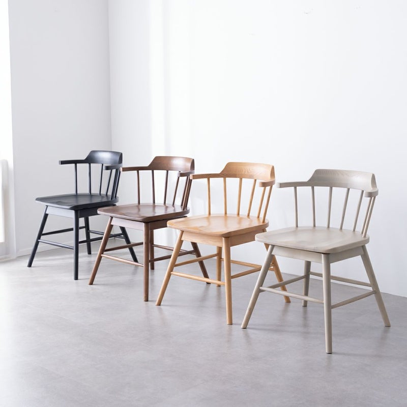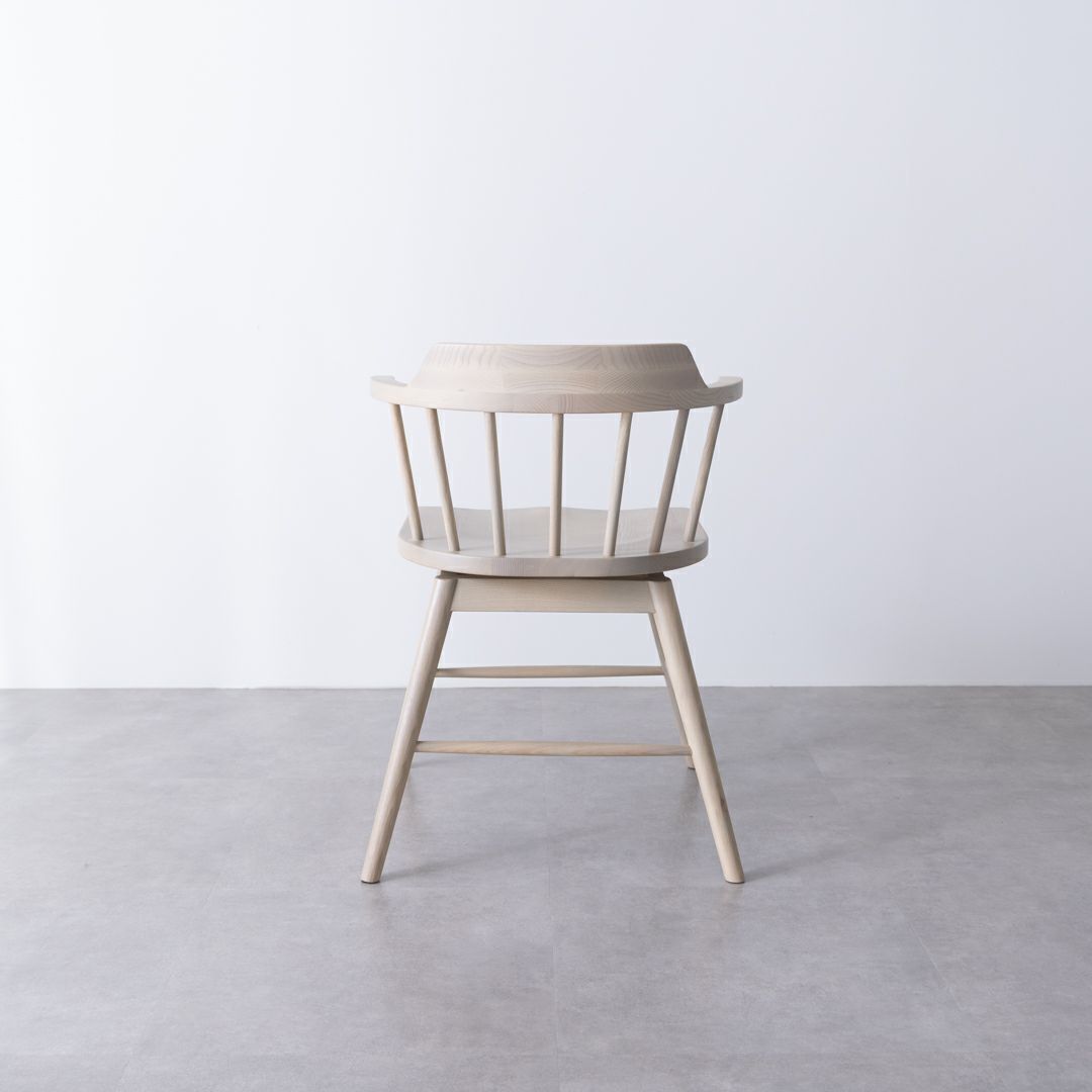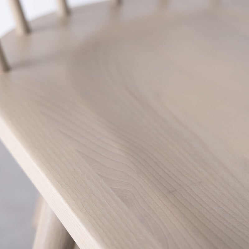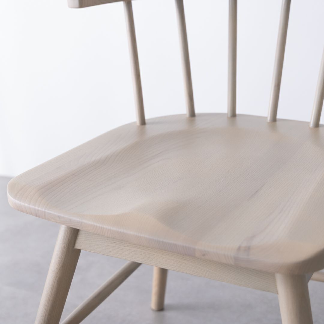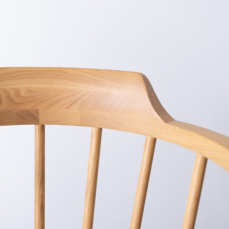 背もたれは、ウィンザーチェアの特徴である、すっきりとした縦のラインが並んだ形。
