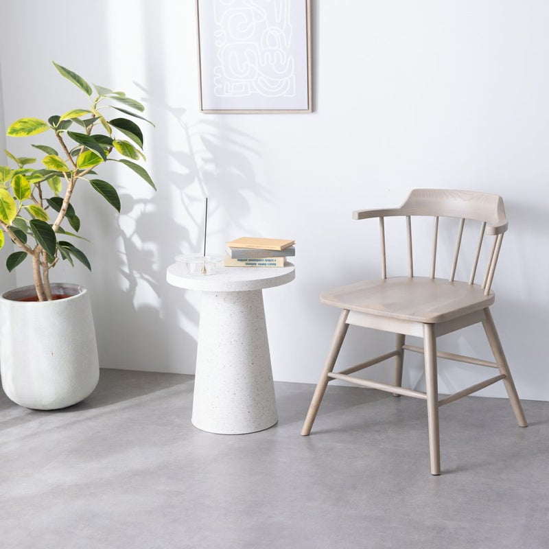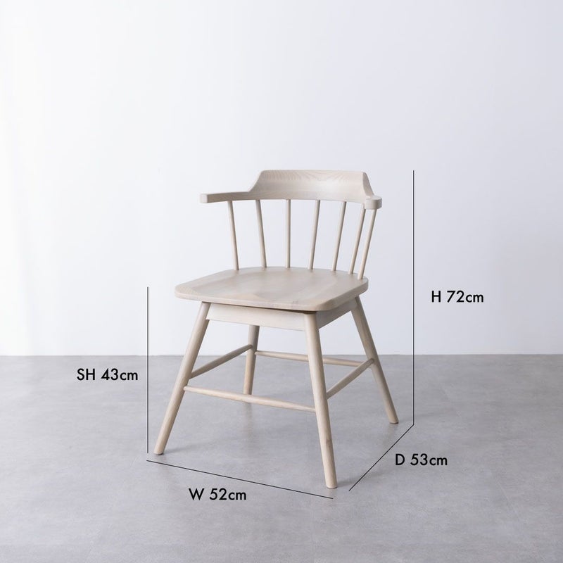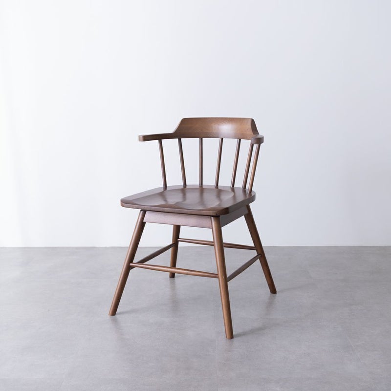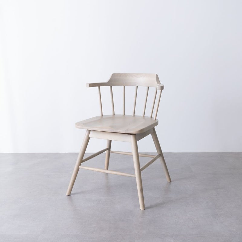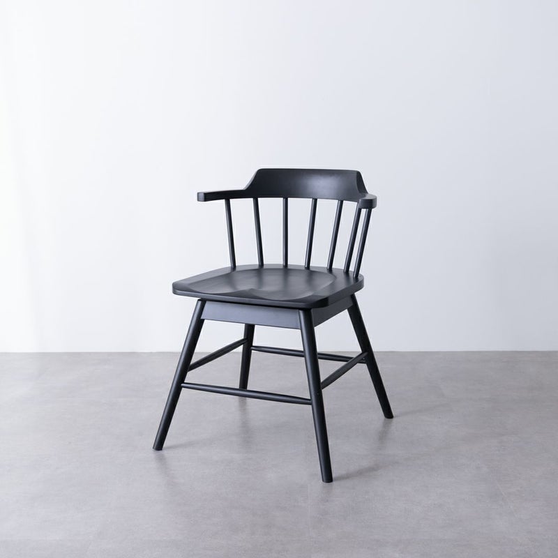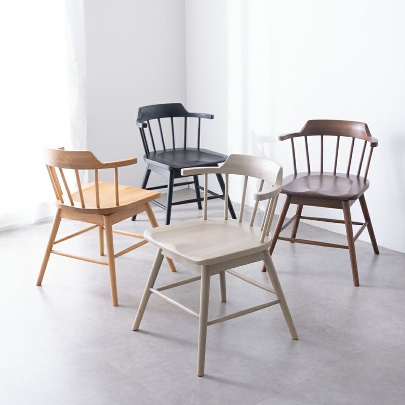 背もたれは、ウィンザーチェアの特徴である、すっきりとした縦のラインが並んだ形。