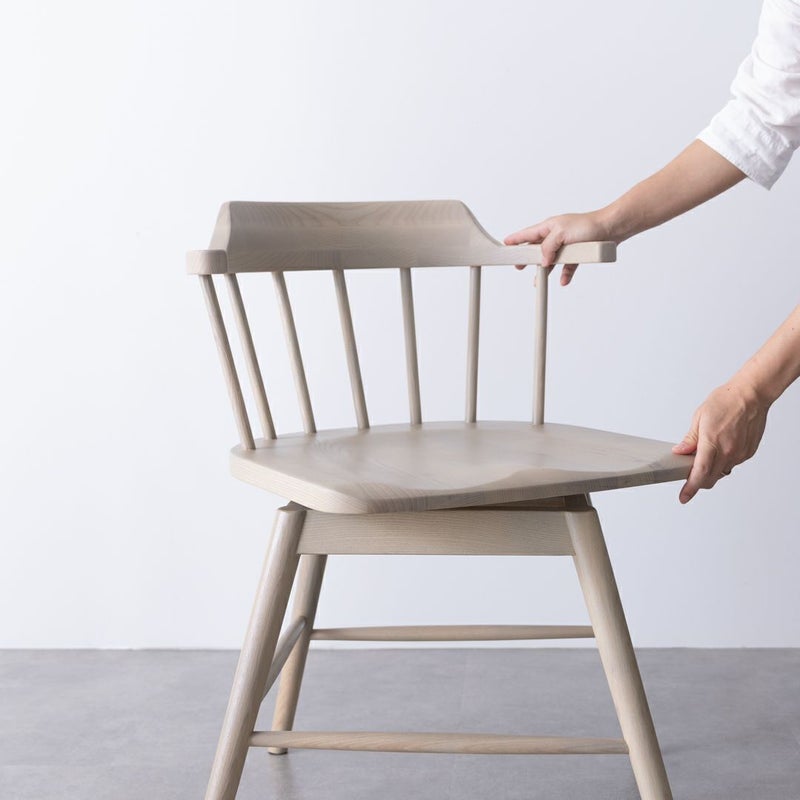 背中に沿って並ぶ細い木のラインが、風を通すような軽やかさを生み出します。