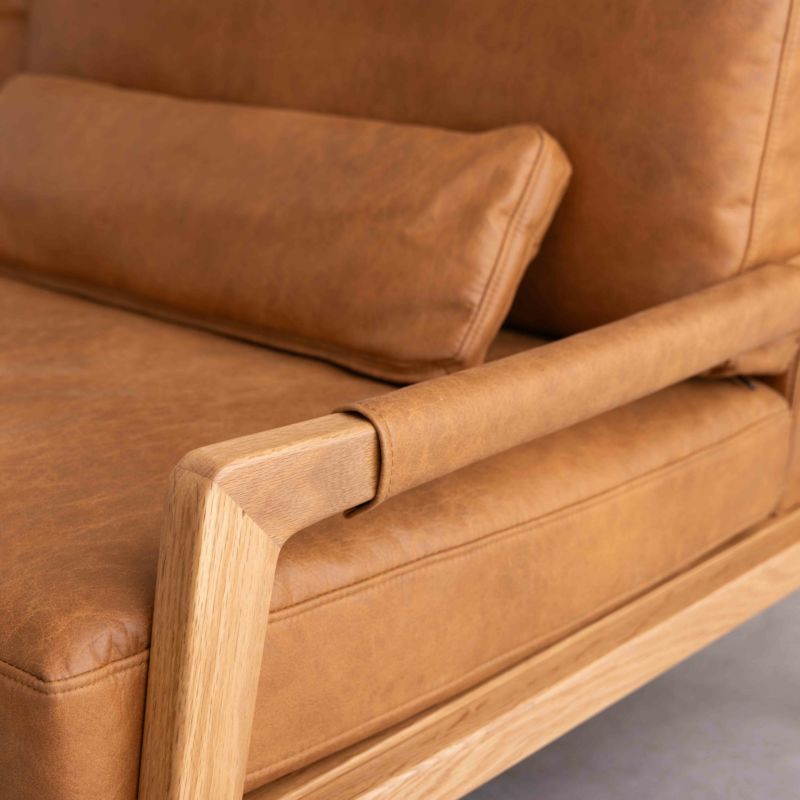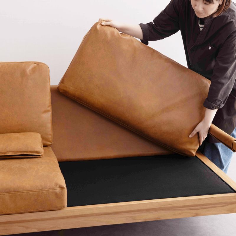 天然木(オーク)、ウレタン塗装、ウィービングベルト、フェザー、ポリエステル、クロスレザー |