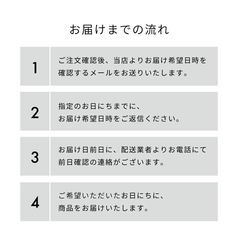 | お届け目安 | ご注文より1週間〜2週間ほどでのお届けです。 ご注文確認後、当店よりお届け希望日時を確認するメールをお送りいたします。 |