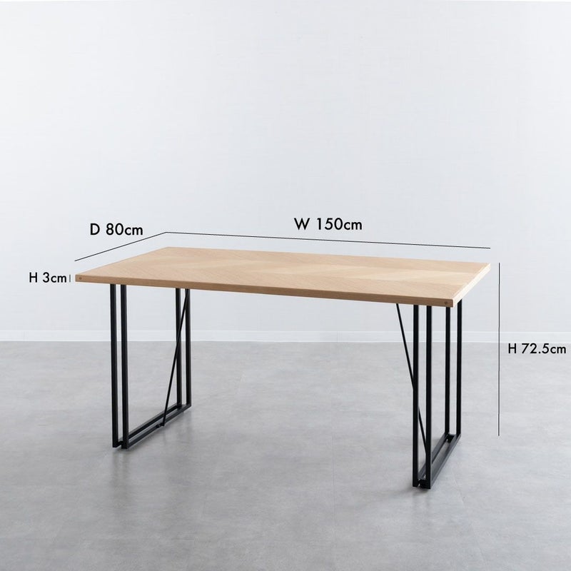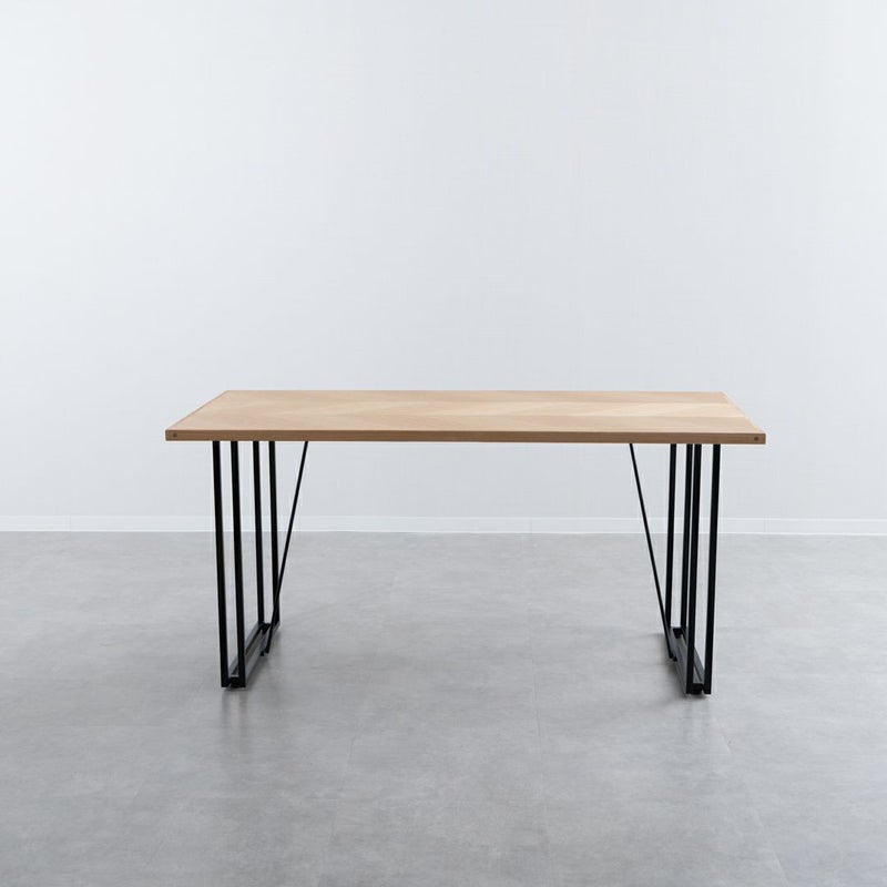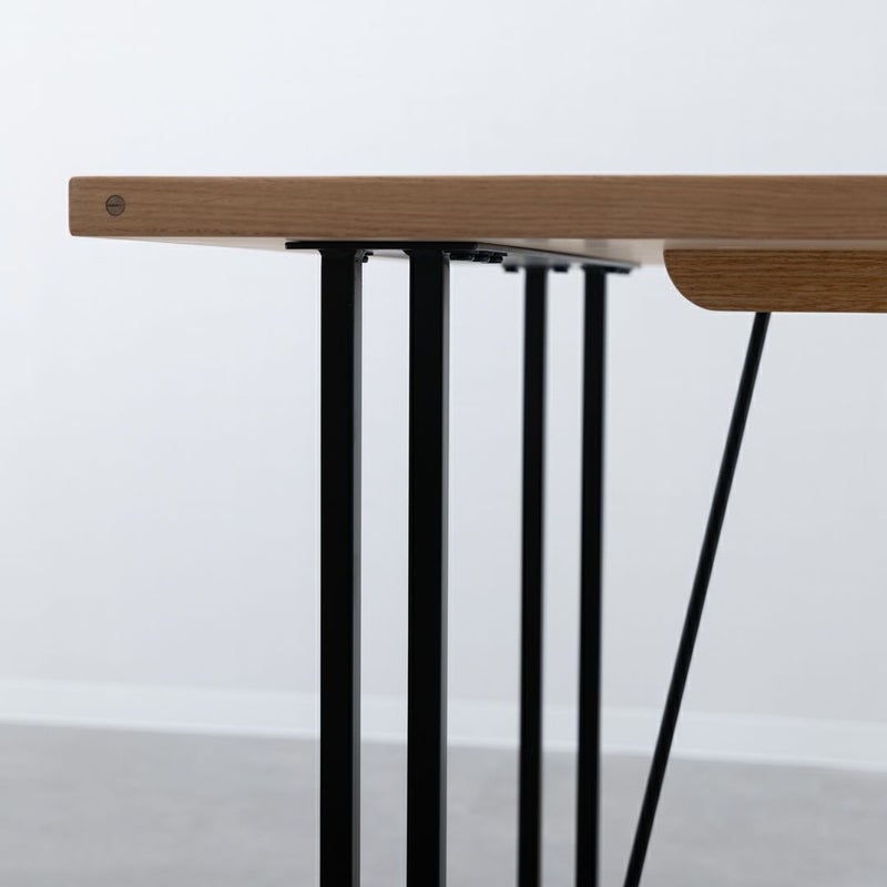細くシャープなブラックスチールの脚は、空間を引き締めるモダンな印象。 4人で囲むのにぴったりなサイズ感で、しっかりとした作りと木目の温もりが心地よいダイニングに。