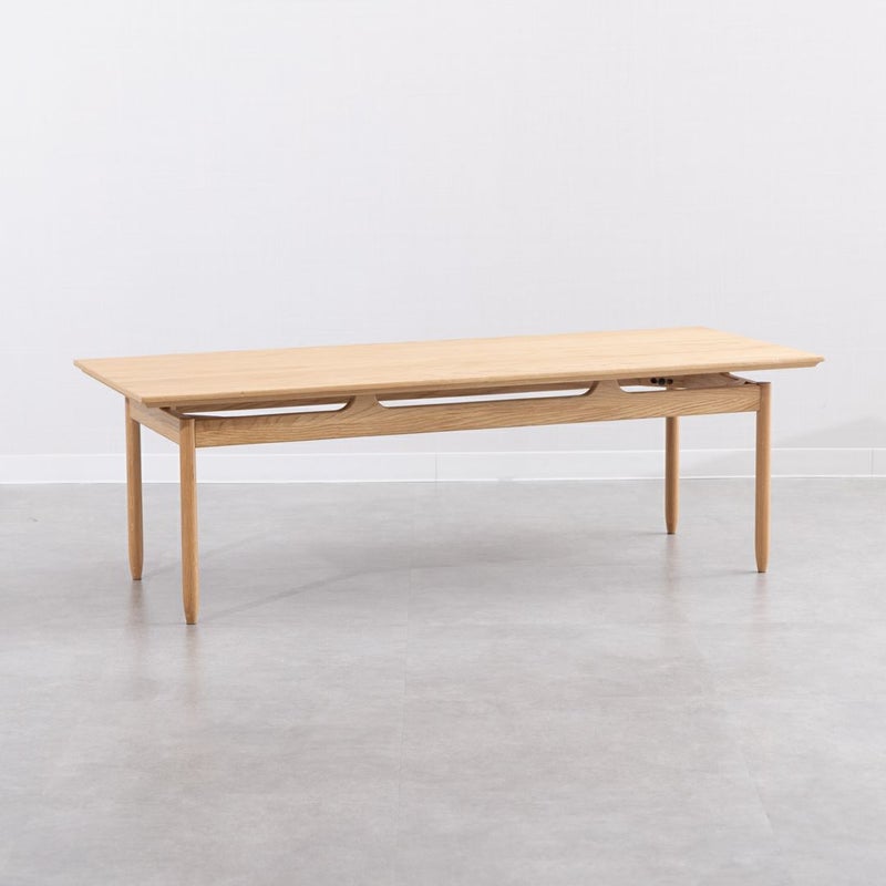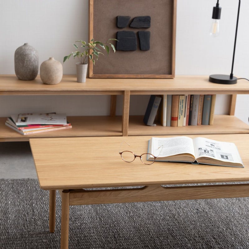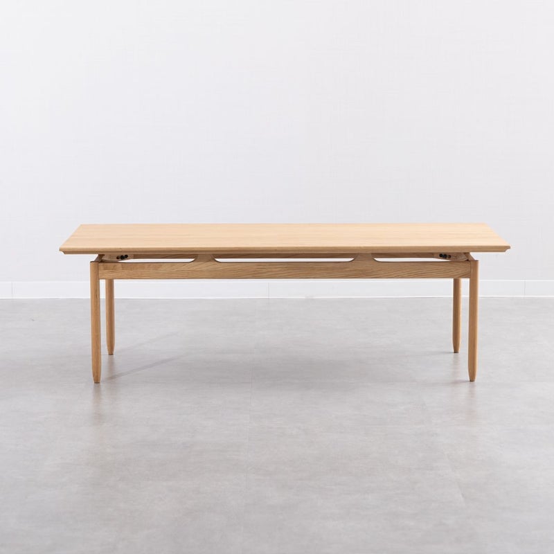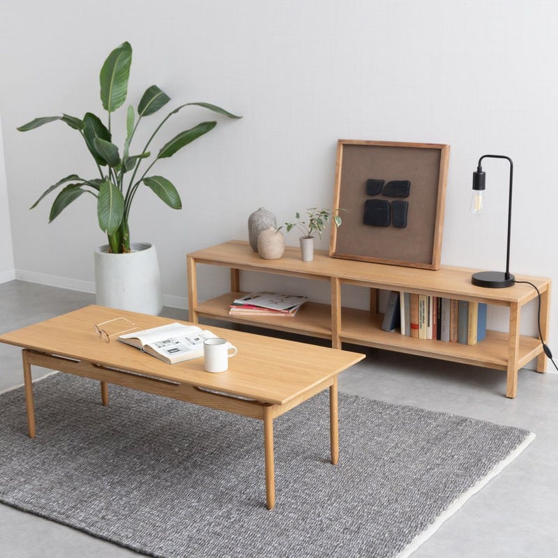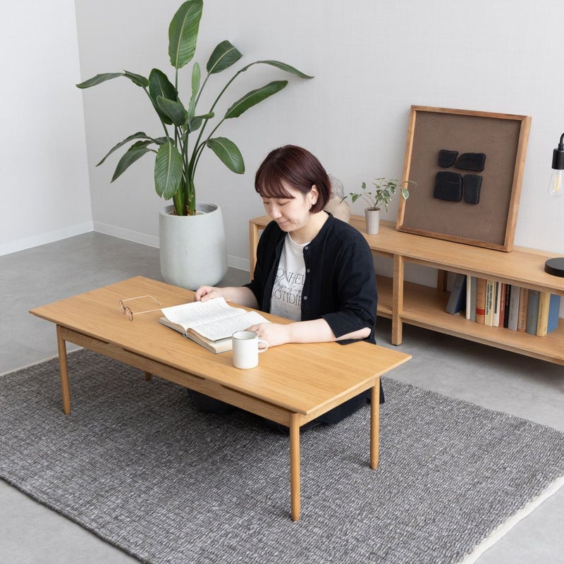 ナチュラルな質感ながら、天板が浮いているように見える特徴的なデザインで、こだわり感じるローテーブルです。