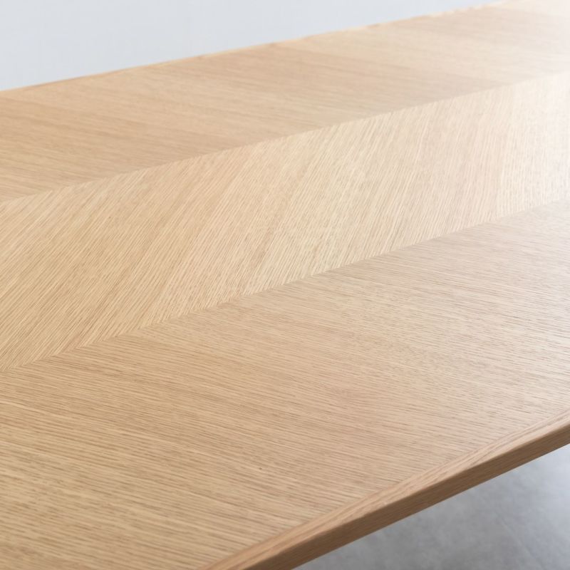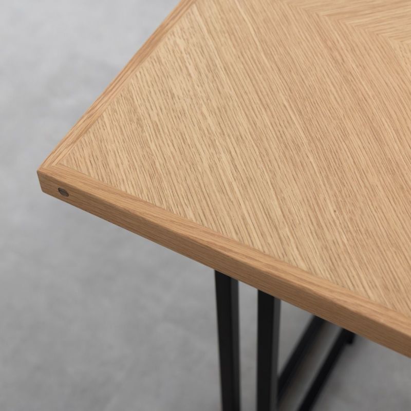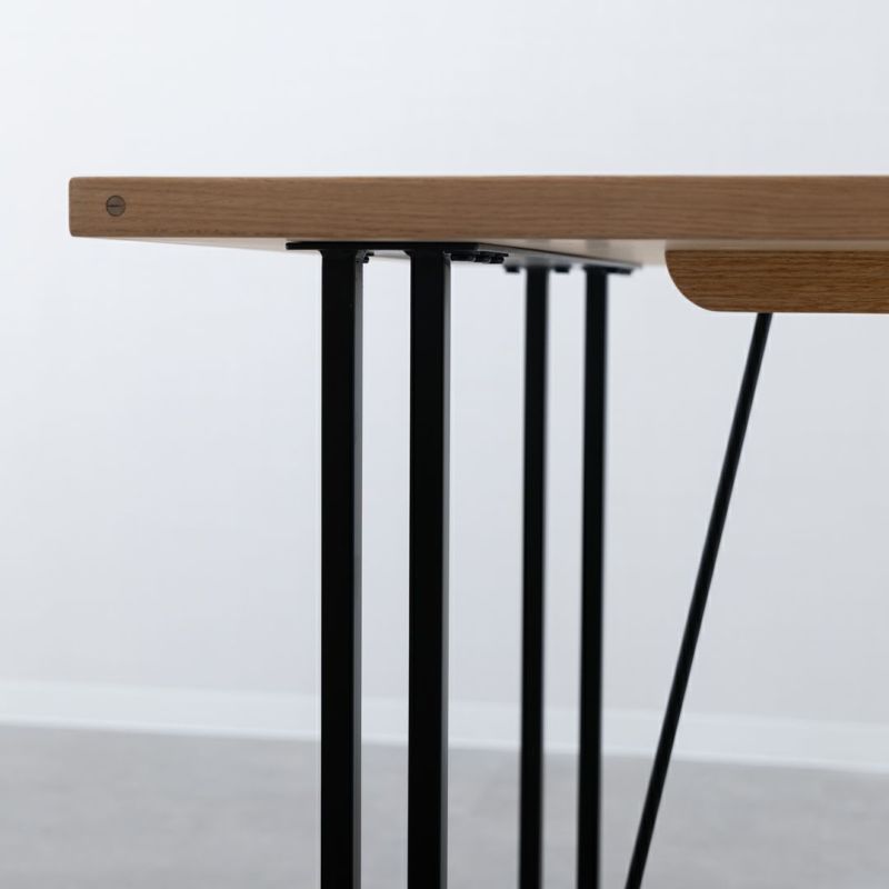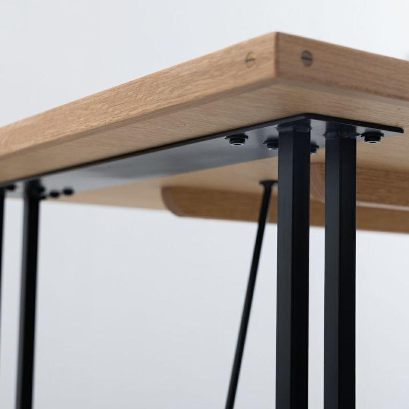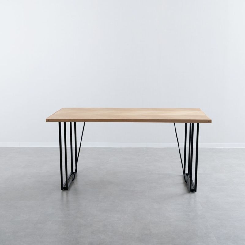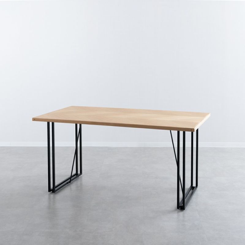 細くシャープなブラックスチールの脚は、空間を引き締めるモダンな印象。 4人で囲むのにぴったりなサイズ感で、しっかりとした作りと木目の温もりが心地よいダイニングに。