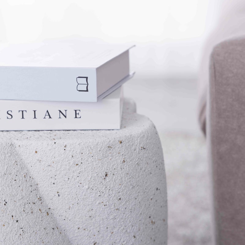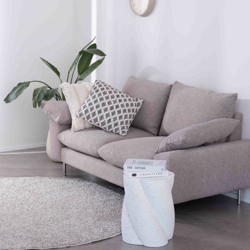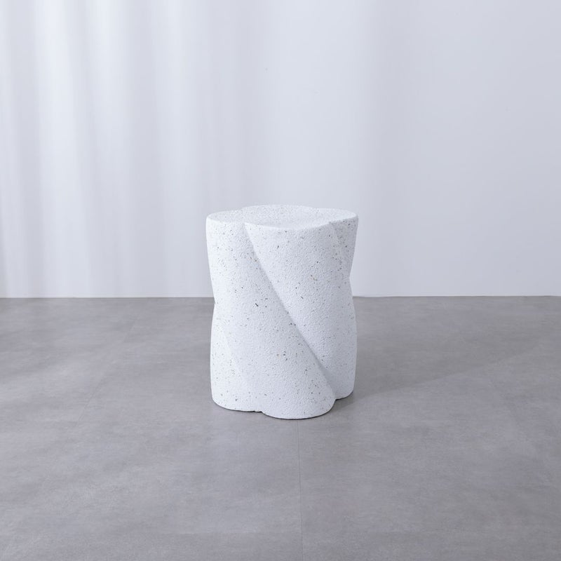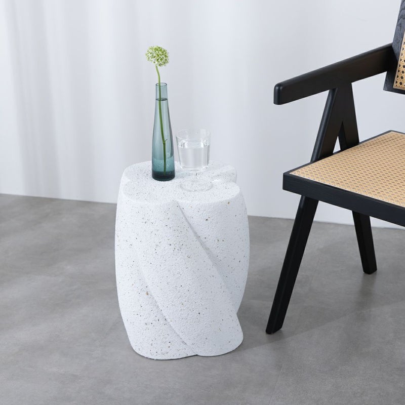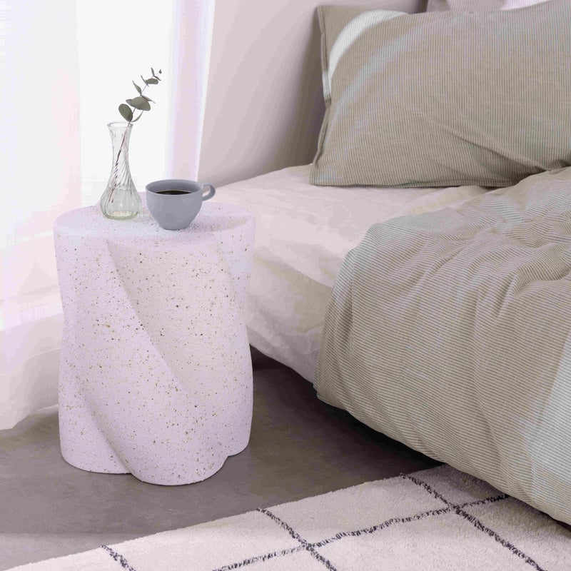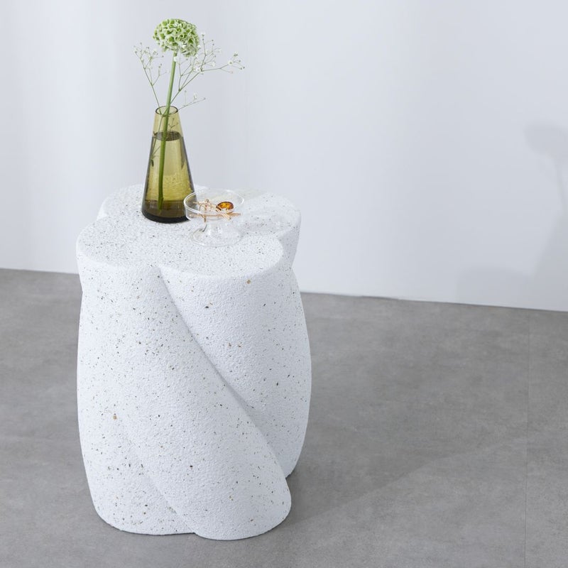 テラゾー柄のトレンド感をまとう、曲線美のサイドテーブル。 丸みのあるフォルムに、やわらかなひねりを加えたシルエット。 まるでオブジェのような存在感で、置くだけで空間にアートな印象を添えてくれます。