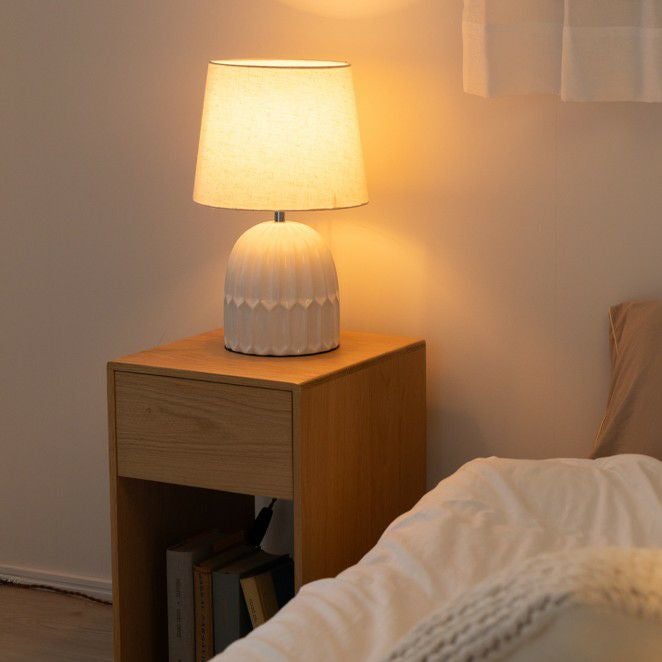 テーブルライト:陶器、アルミ、布
