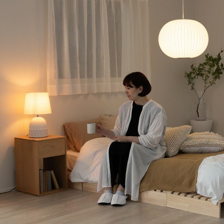 ベッドの横にそっと置けば、落ち着いた灯りが広がり、夜のひとときをゆったりと心地よく過ごせます。