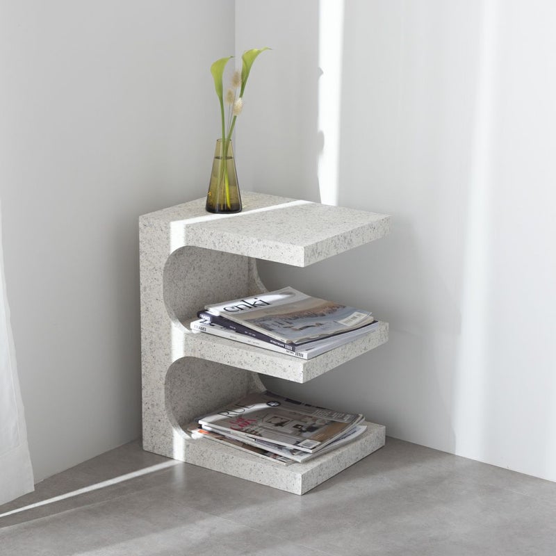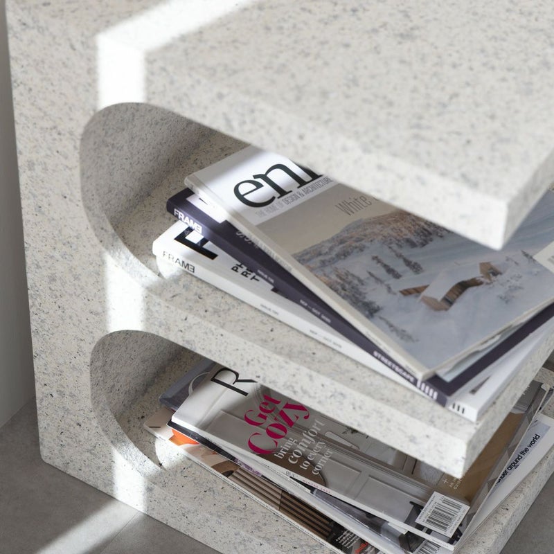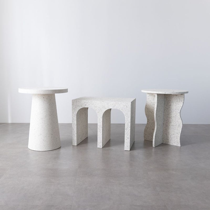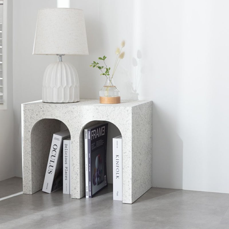 様々な向きで使用でき、空間にアクセントを加えてくれるサイドテーブル。 テラゾー柄がシックでおしゃれな印象です。