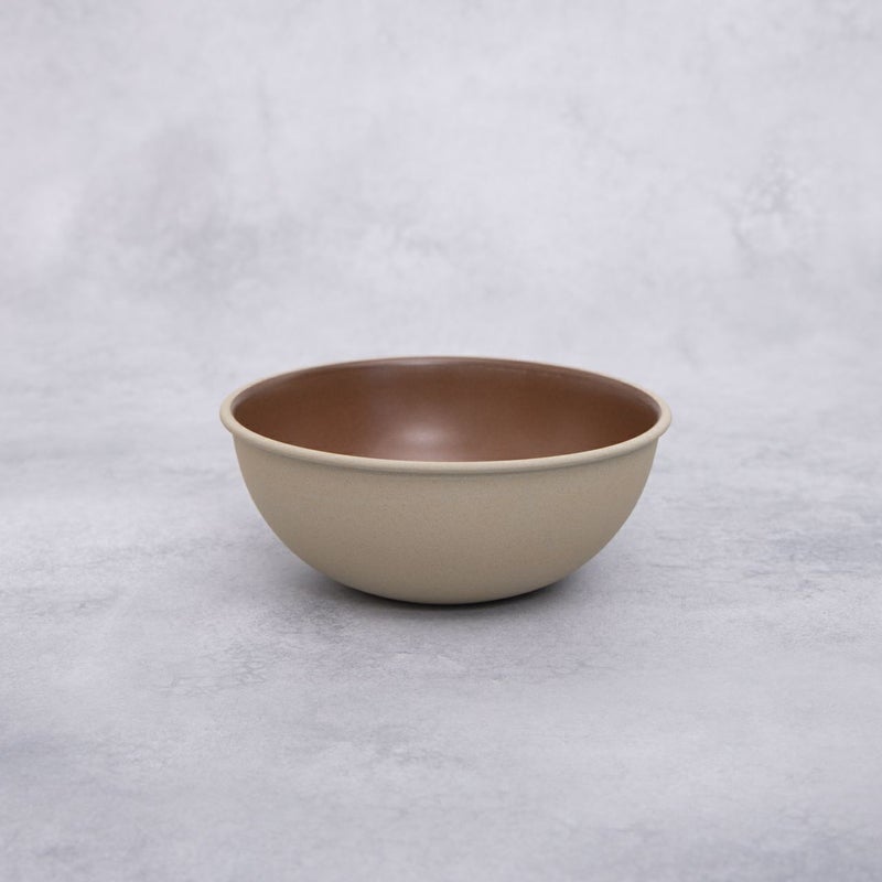 ざらりとした土に触れるような感覚で、無垢の素材そのものを楽しめるボウルです。 つい触りたくなるような土の質感が全面に表現された、他にはないデザインが心をくすぐります。 内側はツヤを落としたマットなブラウンで、上品な仕上がりになっています。