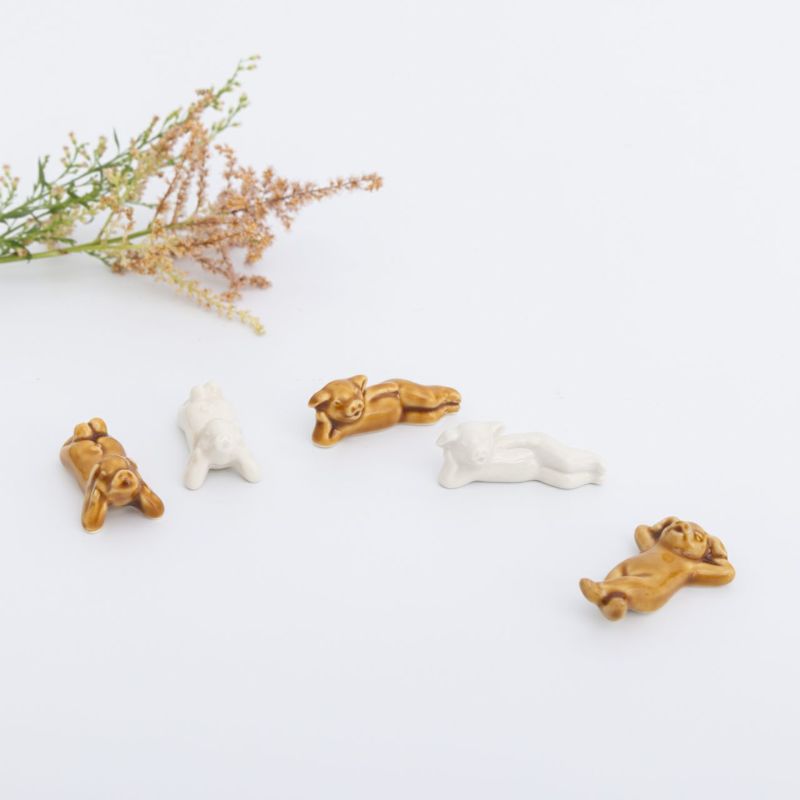 幸せを運ぶ動物として、世界中で愛されている豚のモチーフは、ギフトにぴったり。 今回は以下の5つセットでご用意しております。 ・ひじまくら(キャメル/ホワイト) ・うつぶせ(キャメル/ホワイト) ・あおむけ(キャメル)