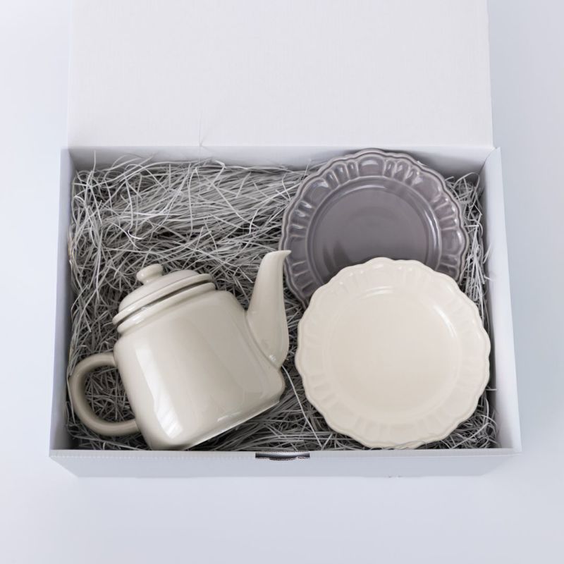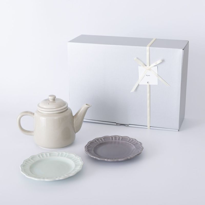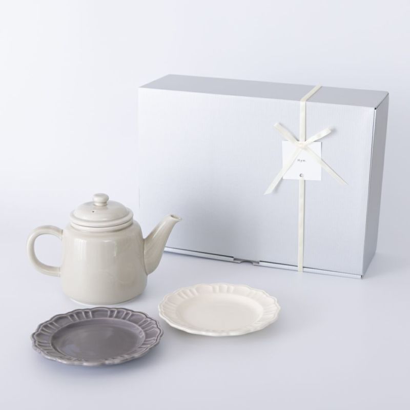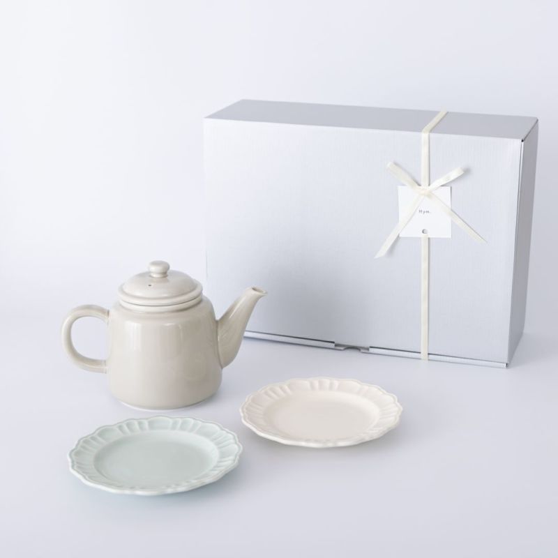 忙しい毎日の中で、 「少しだけ、ゆっくりしてね」そんな気持ちを届けたいときに。 ぷっくりとしたフォルムのティーポットと、ポンポネ15cmプレートのセットが、 いつものお茶の時間を、そっと特別でくつろぎのあるひとときにしてくれます。