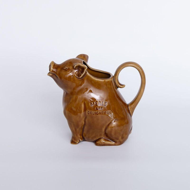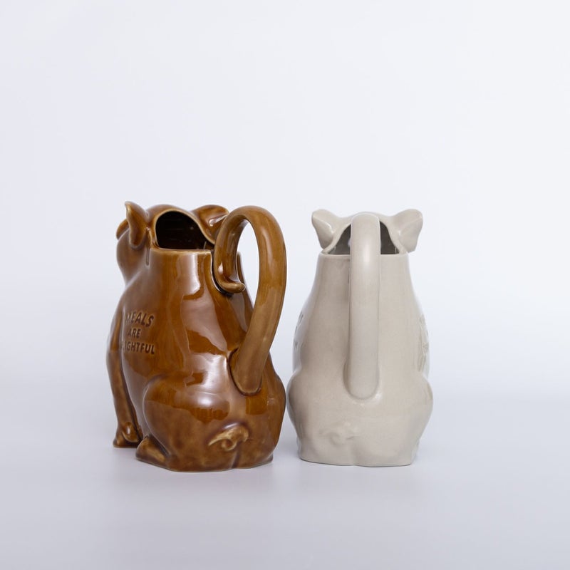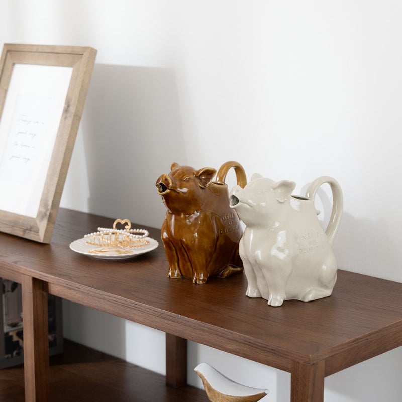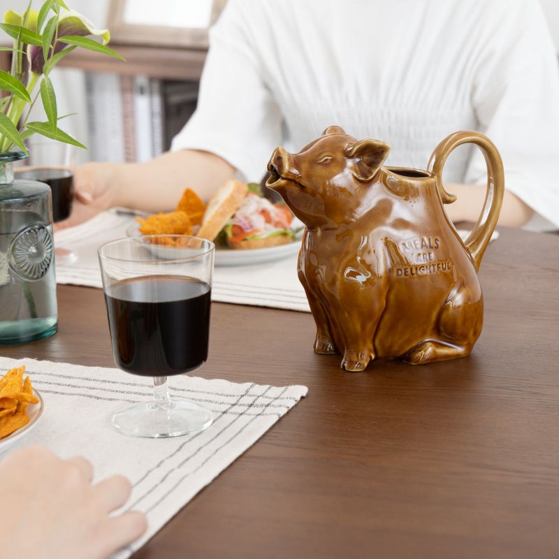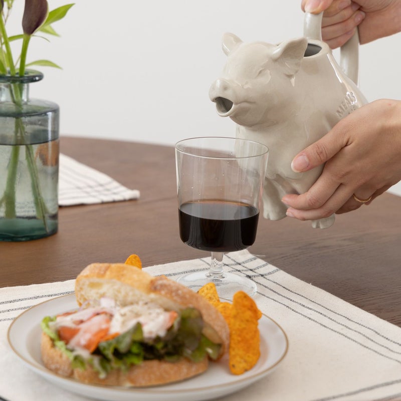 ひと目見ただけでその愛らしさに心を奪われてしまう、ぶたをモチーフにした陶器製のピッチャーです。 今にも語りかけてきそうな口元、鋭い瞳、ちょこんと生えた尻尾も愛嬌たっぷり。 観る角度によって表情が変わる不思議な魅力も。 お気に入りのビューポイントを探してみてください。