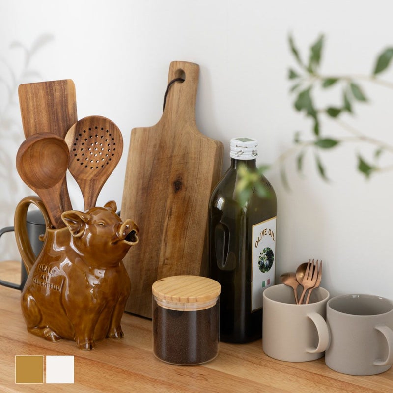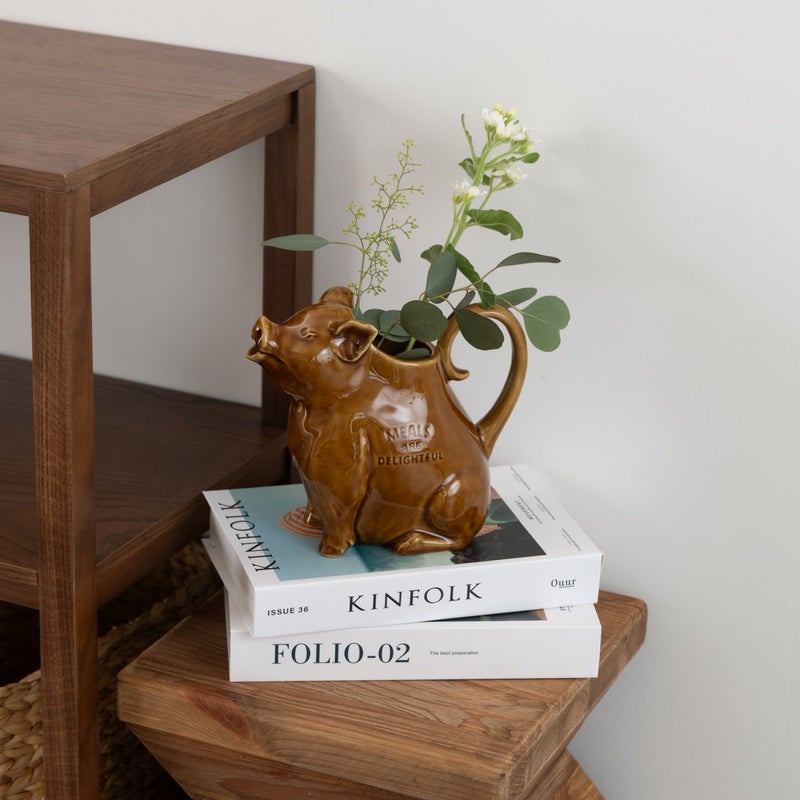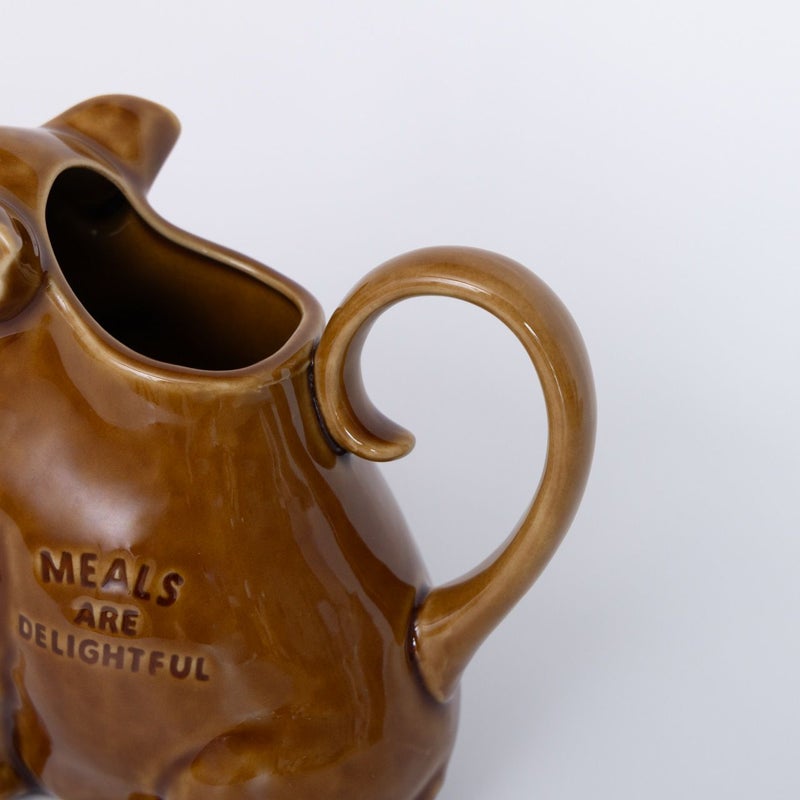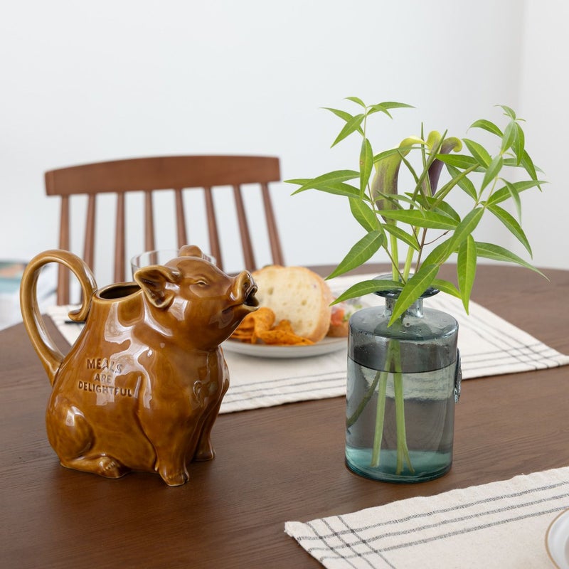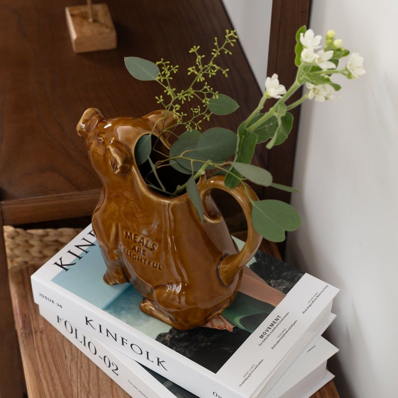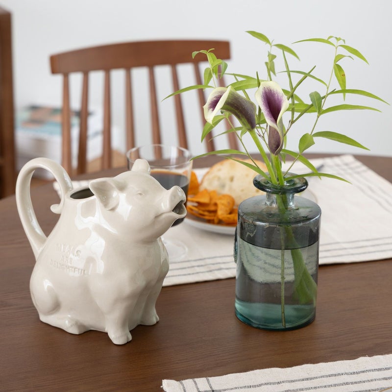ひと目見ただけでその愛らしさに心を奪われてしまう、ぶたをモチーフにした陶器製のピッチャーです。 今にも語りかけてきそうな口元、鋭い瞳、ちょこんと生えた尻尾も愛嬌たっぷり。 観る角度によって表情が変わる不思議な魅力も。 お気に入りのビューポイントを探してみてください。