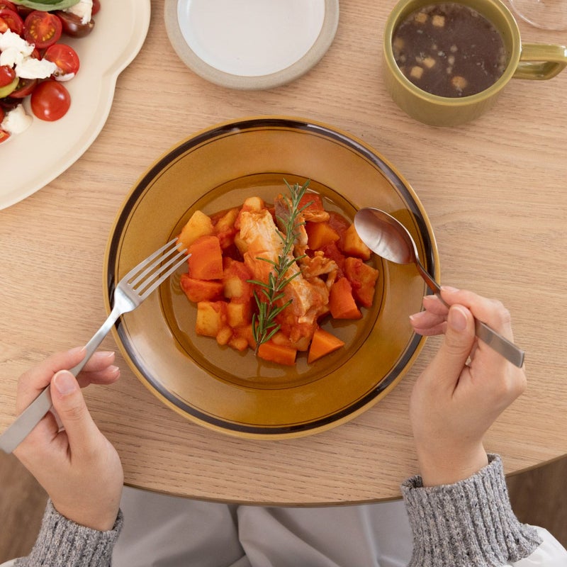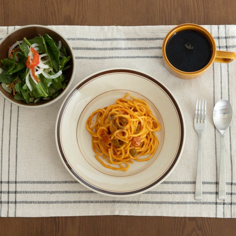 まるで喫茶店のようなレトロで温かみのあるデザインとリムの余白が、さりげなく食卓に彩りを添えてくれます。