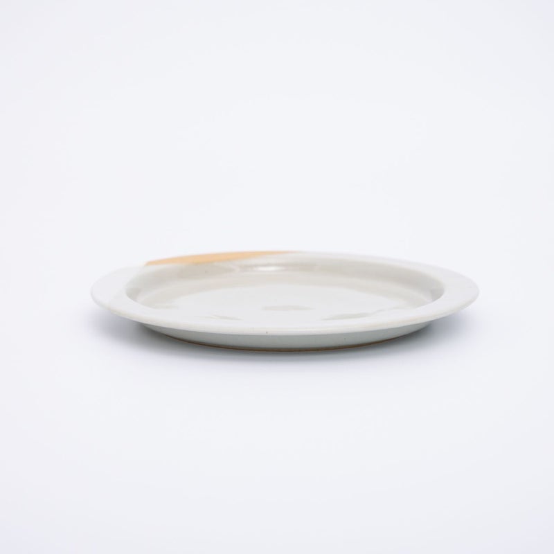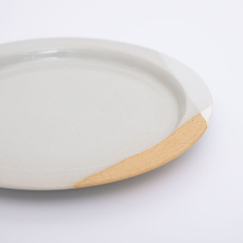 釉薬の重なりと、土そのものあたたかみを感じる個性的なデザインの22cmのプレートです。 1つのうつわの中で、土のざらりとした質感と釉薬のつるりとした質感の異なる手触りが楽しめるのもポイントです。 アートのようなデザインとナチュラルなカラーリングが、インテリアともマッチし、どこか目につくところに飾っておきたくなるような存在です。