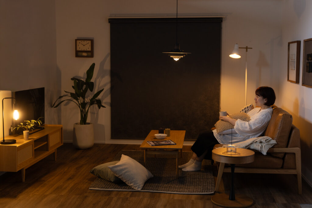 ソファの横やリビングの隅にスタンドライトを置くだけで、部屋の雰囲気がやわらぎます。
