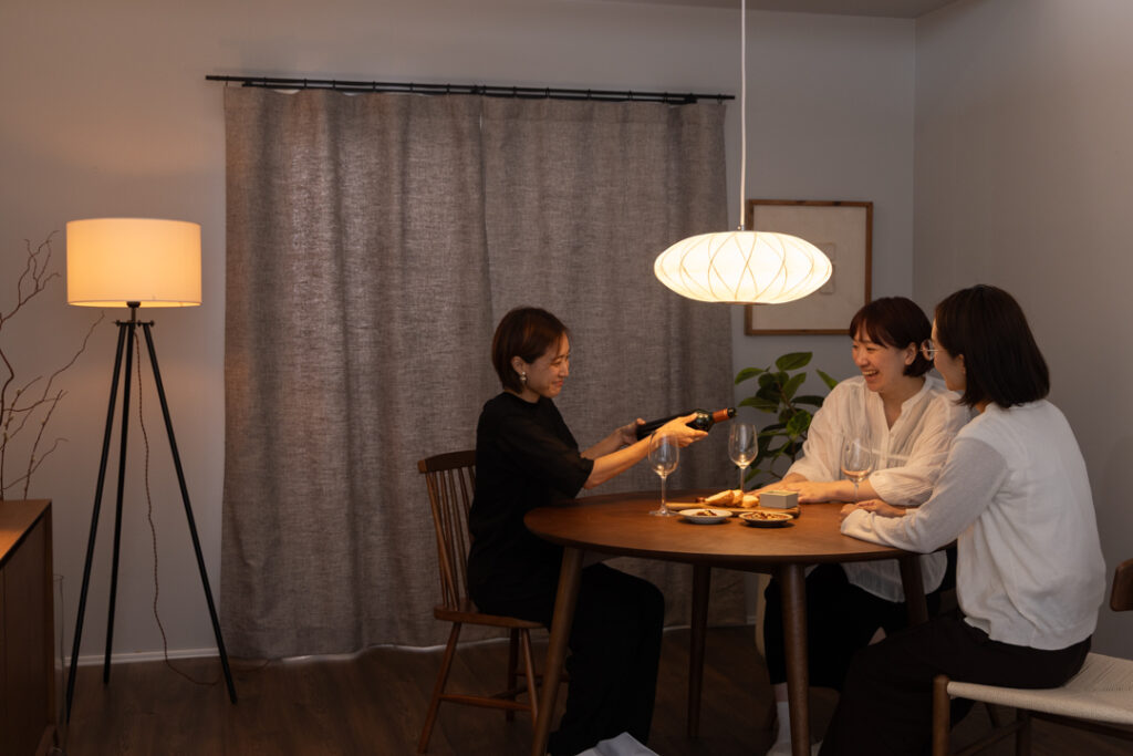 昼間はオブジェのように、夜はダイニングをあたためる主役の灯り。