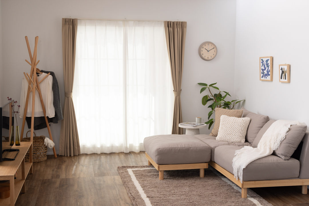 やわらかな光を取り込みながら、毎日の暮らしを快適にしてくれる、一枚で頼もしいカーテンです。