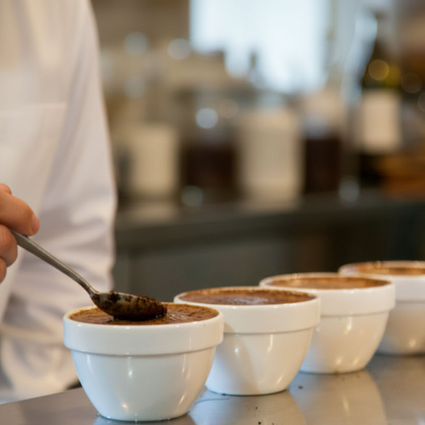 焙煎のあと、毎回「カッピング」で味わいを確かめています。