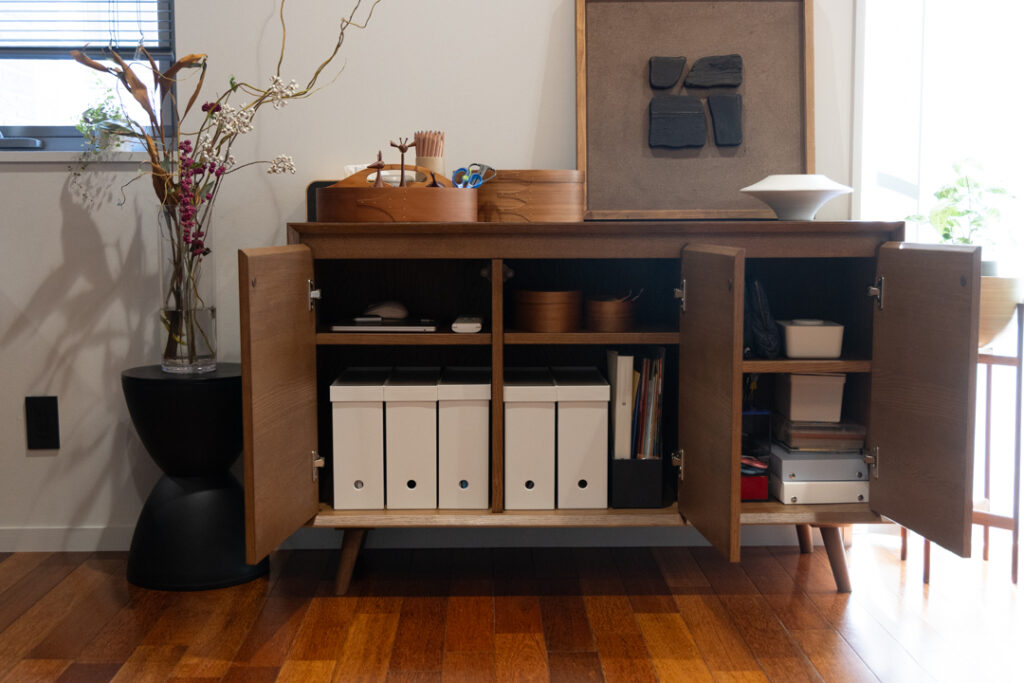 「隠す」だけでなく「見せる収納」として空間にやさしい統一感が生まれました。