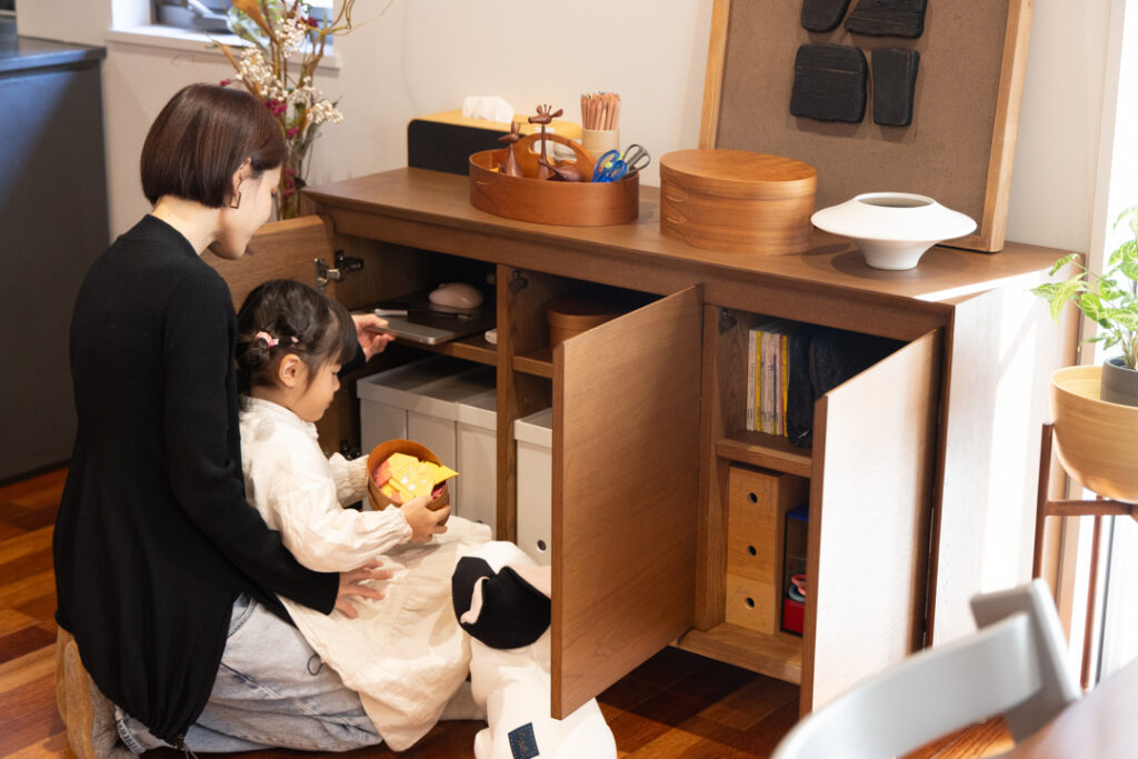 「入らないから出しっぱなし」になりがちなものも、きちんと隠してしまえるようになりました。
