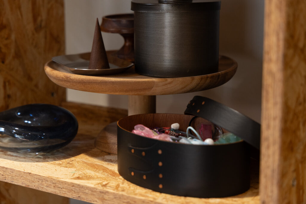 シェーカーボックスには小物をしまって、出しっぱなしでもすっきり見え、必要なものはきちんとしまえる心地よさがあります。