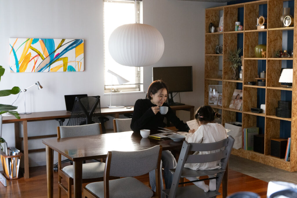 食卓とは別に仕事や勉強の場所ができたことで、家族それぞれの時間もスムーズに。