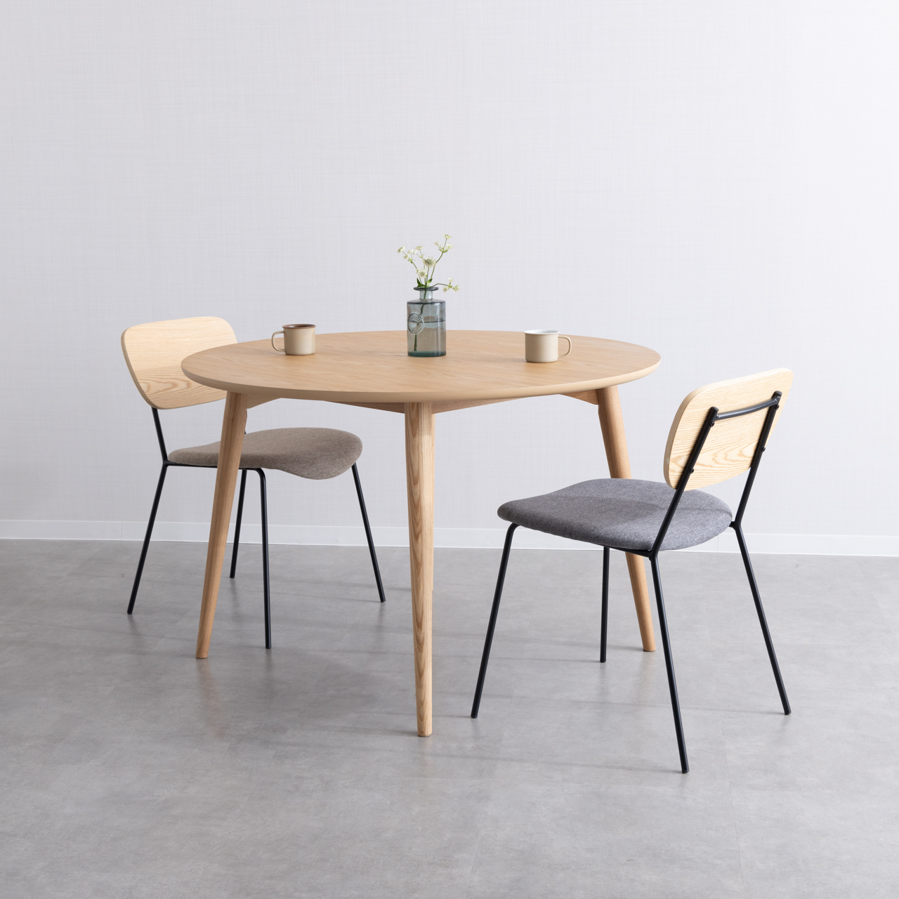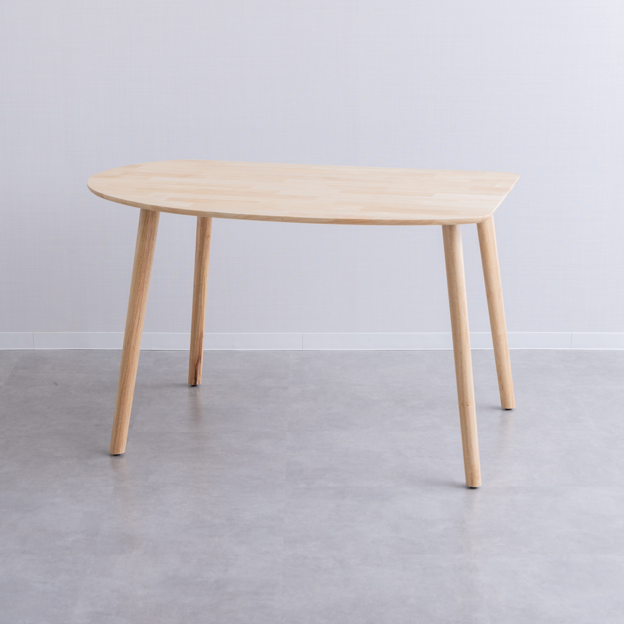全体に角をなくし、やさしい丸みをもたせたダイニングテーブル。見た目にも重たく感じさせないデザインと、軽やかな本体設計で、空間にすっきりとした印象を与えてくれます。