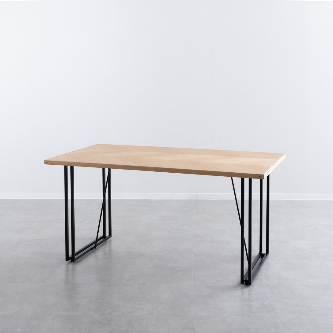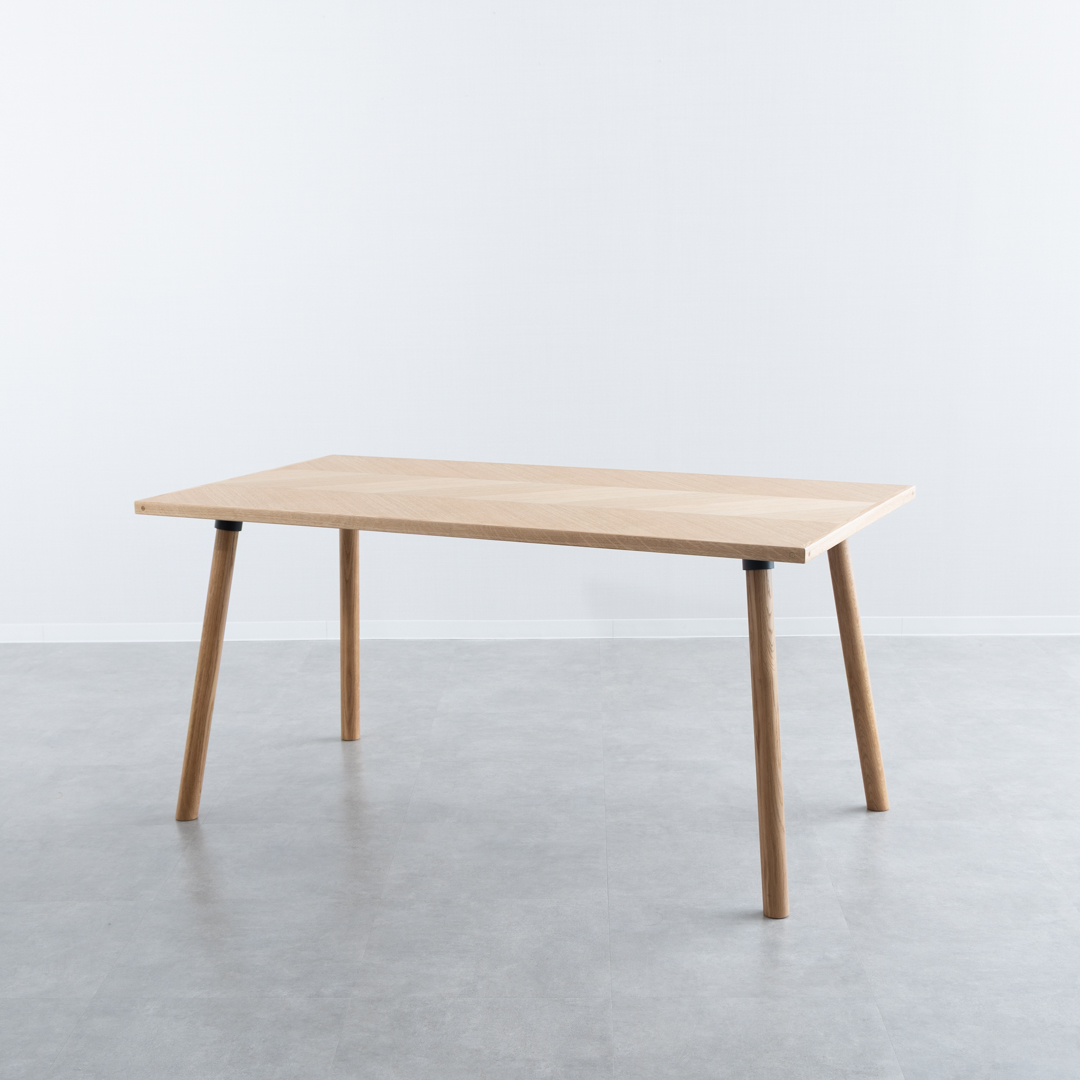天板は、木目の向きを巧みに変えて貼り合わせたヘリンボーン柄。繊細な木目のリズムが、空間にさりげないアクセントを添えてくれます。